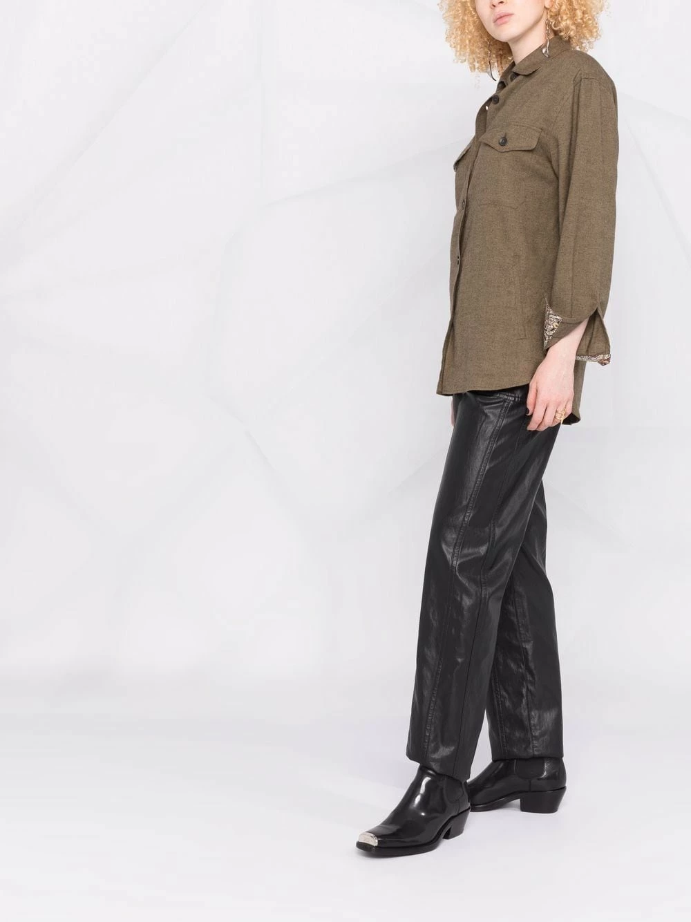 Col classique, boutonnière sur le devant, poches devant à rabat, manches longues, poignets boutonnés, motif cachemire, ourlet incurvé. Matière : coton.