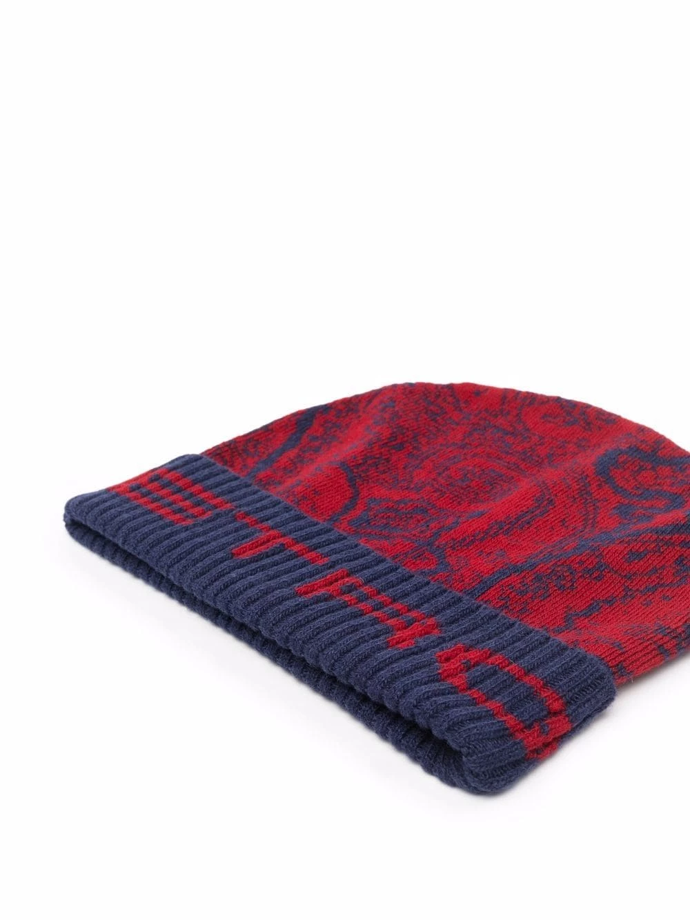 Jacquard à motif logo, bord en maille côtelée, bord retroussé. Matière : laine.
