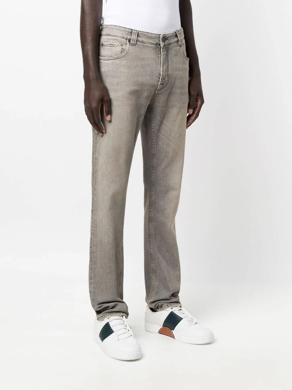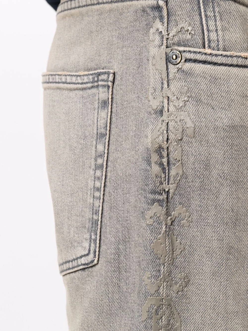 Motif cachemire, patch logo sur l’arrière, passants de ceinture, fermeture à zip et boutons sur le devant, cinq poches classiques, coupe droite.