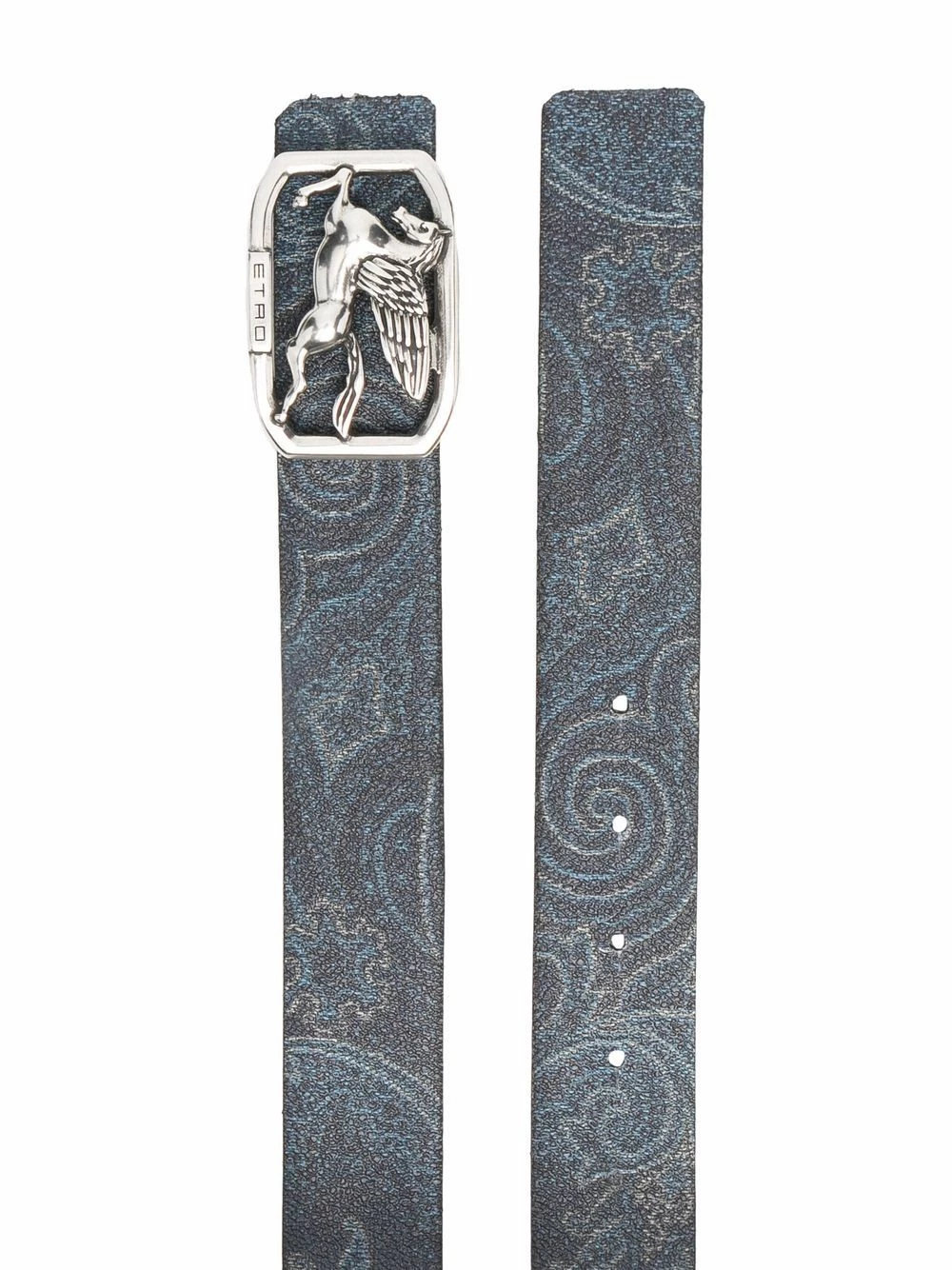 Motif cachemire, détail de boucle à logo, trous percés. Couleur : bleu.