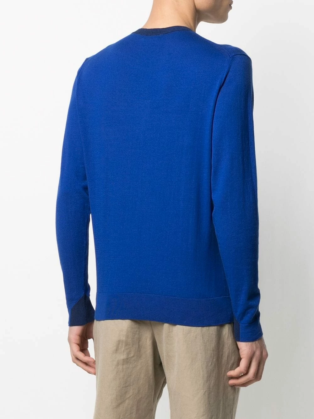 Maille fine, bordures nervurées, logo brodé, encolure ras du cou, manches longues. Matière : coton.