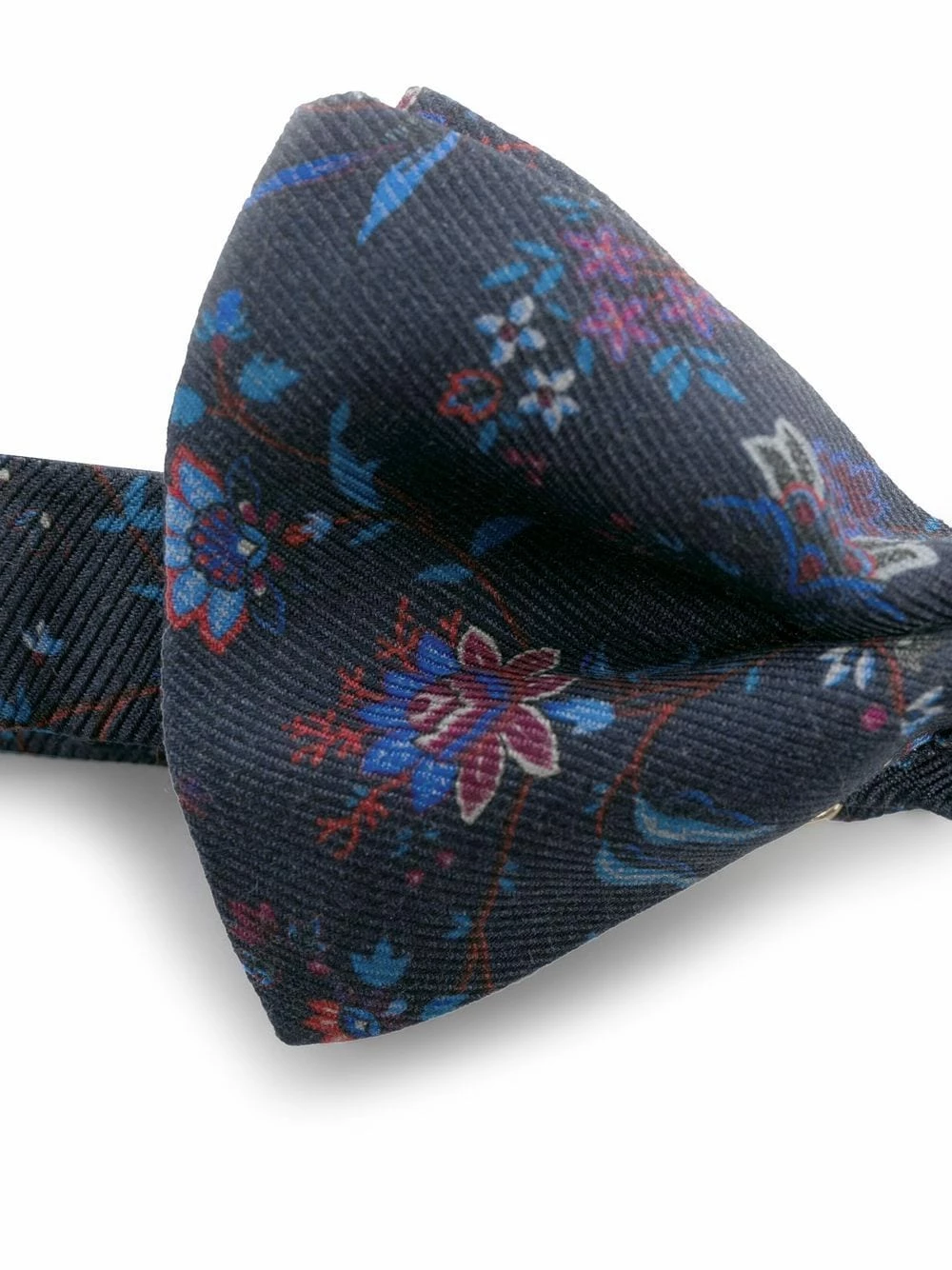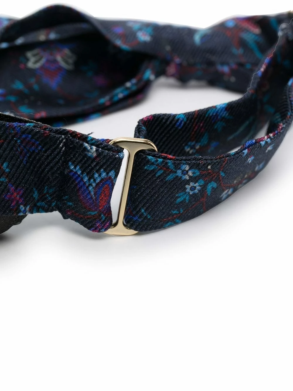 Détail de nœud, imprimé à fleurs, fermeture cliquet à l’arrière. Matière : soie.