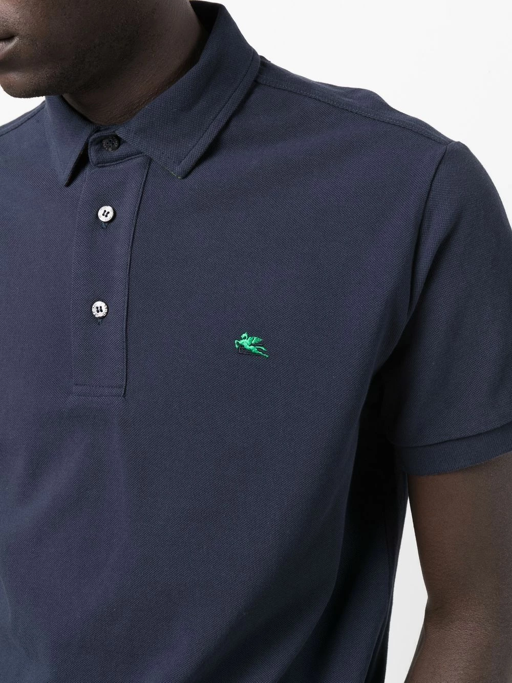 Logo brodé sur la poitrine, col polo, boutonnière sur le devant, manches courtes, ourlet plus long au dos. Matière : coton.