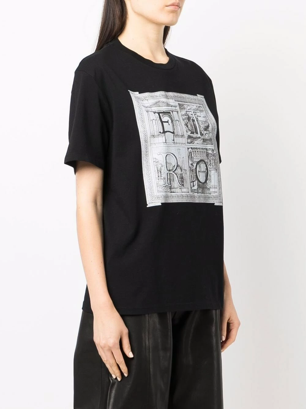 Logo imprimé sur le devant, encolure ronde, manches courtes, ourlet droit. Couleur : noir. Matière : coton.