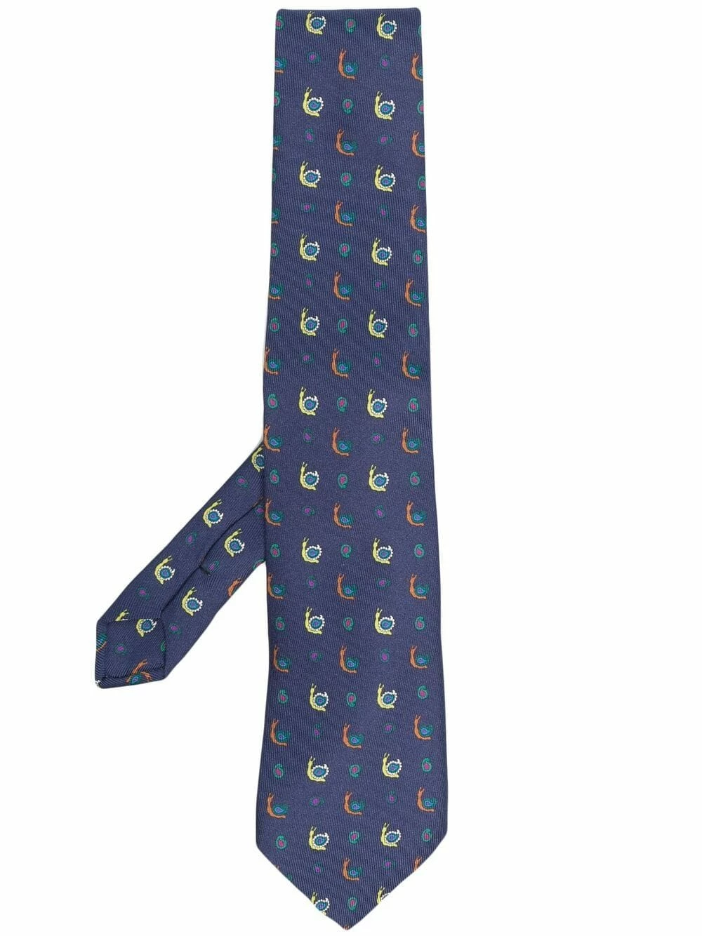 Imprimé graphique, bout pointu, taille ajustable. Matière : soie.