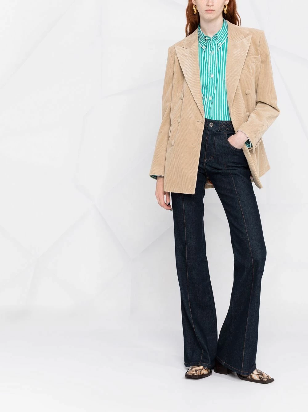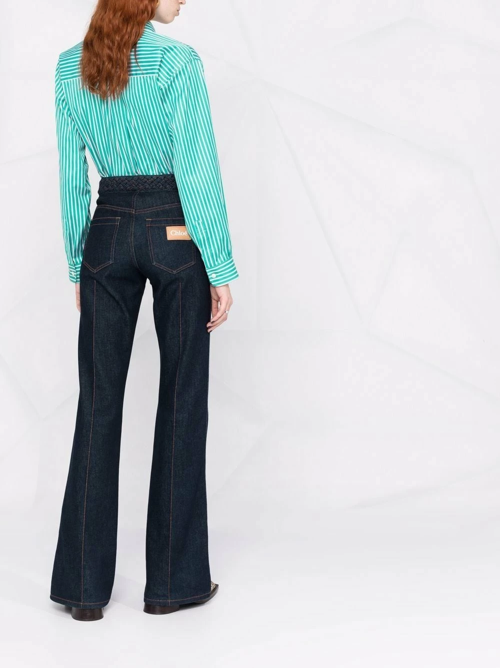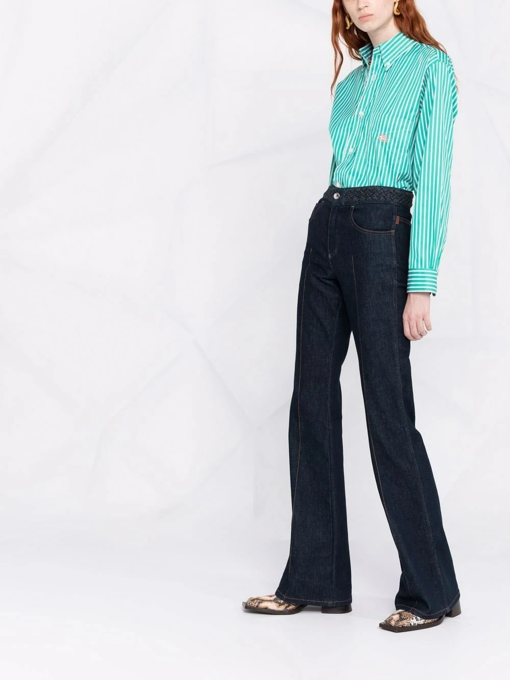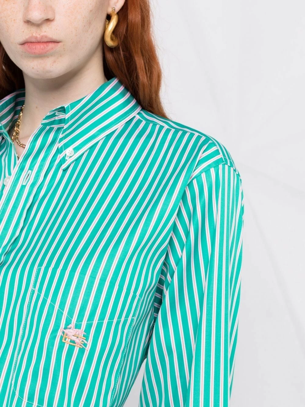 Rayures verticales imprimées, logo brodé, col classique, boutonnière sur le devant, manches longues, poignets boutonnés, ourlet droit. Matière : coton.