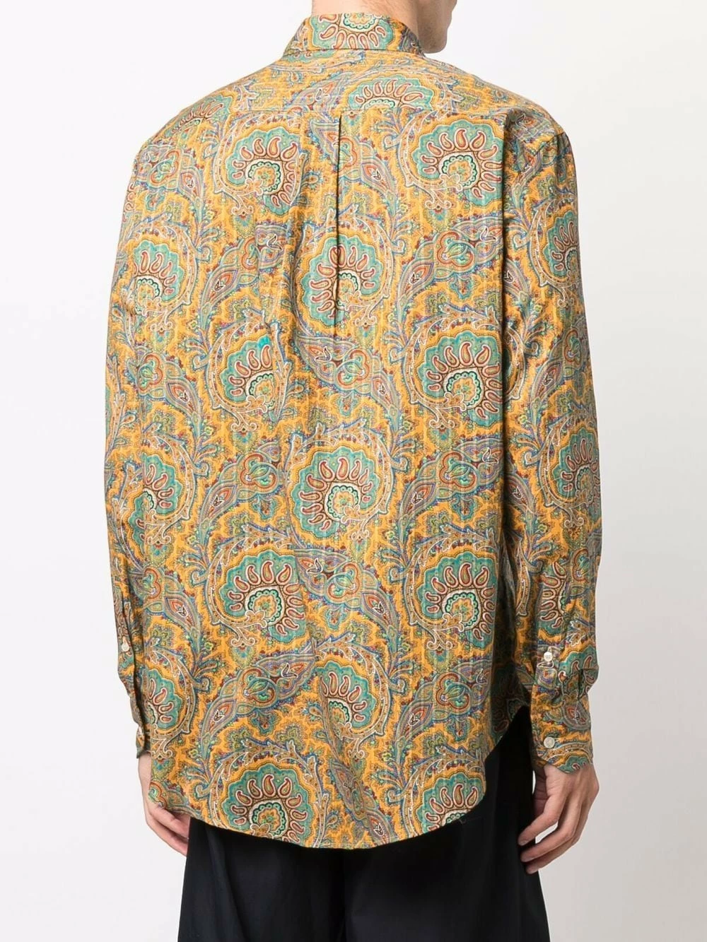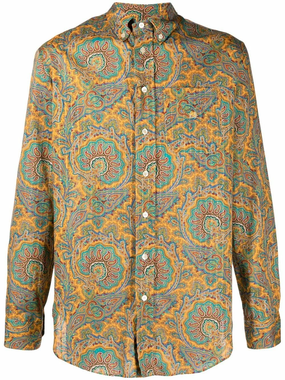 Motif cachemire, col boutonné, manches longues. Couleur : jaune. Matière : coton.