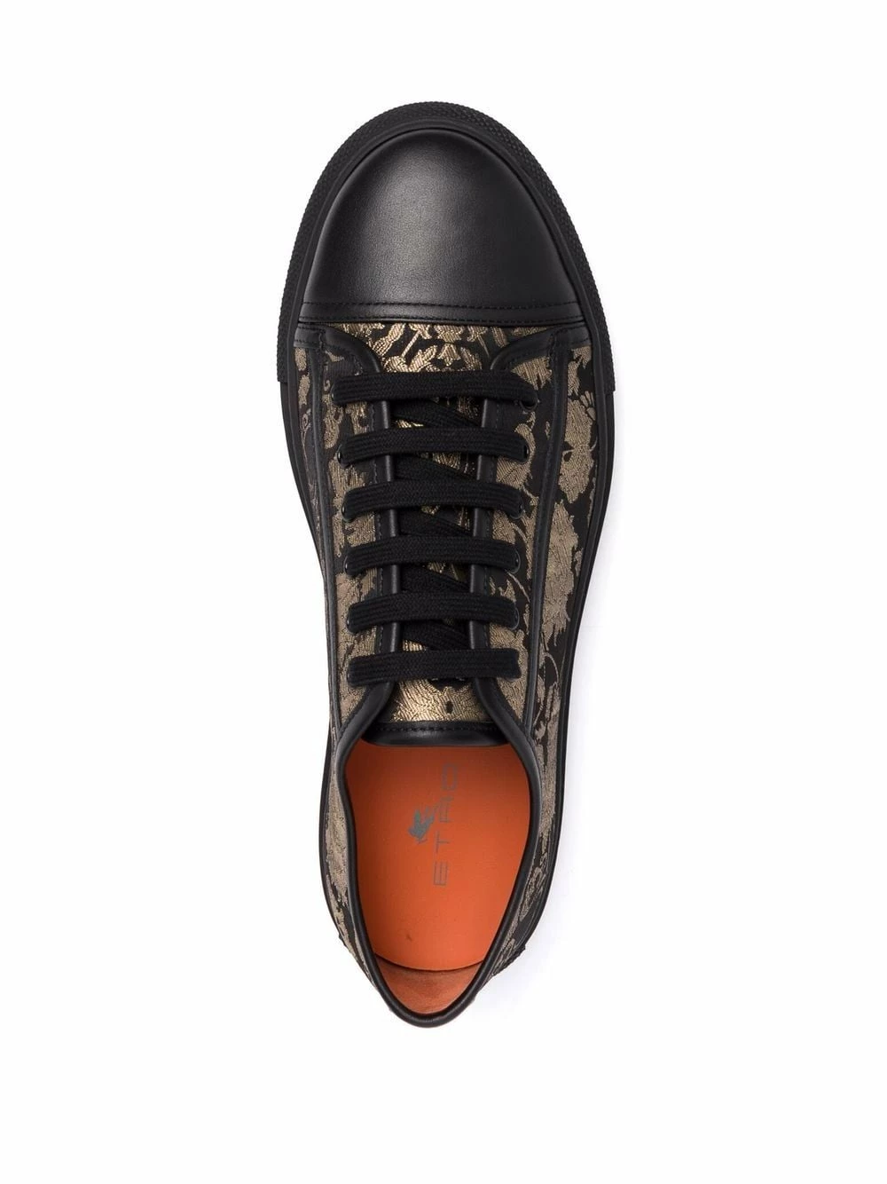 Design en jacquard, bout contrastant, bout rond, fermeture à lacer sur le devant, semelle intérieure à logo, semelle plate en caoutchouc.