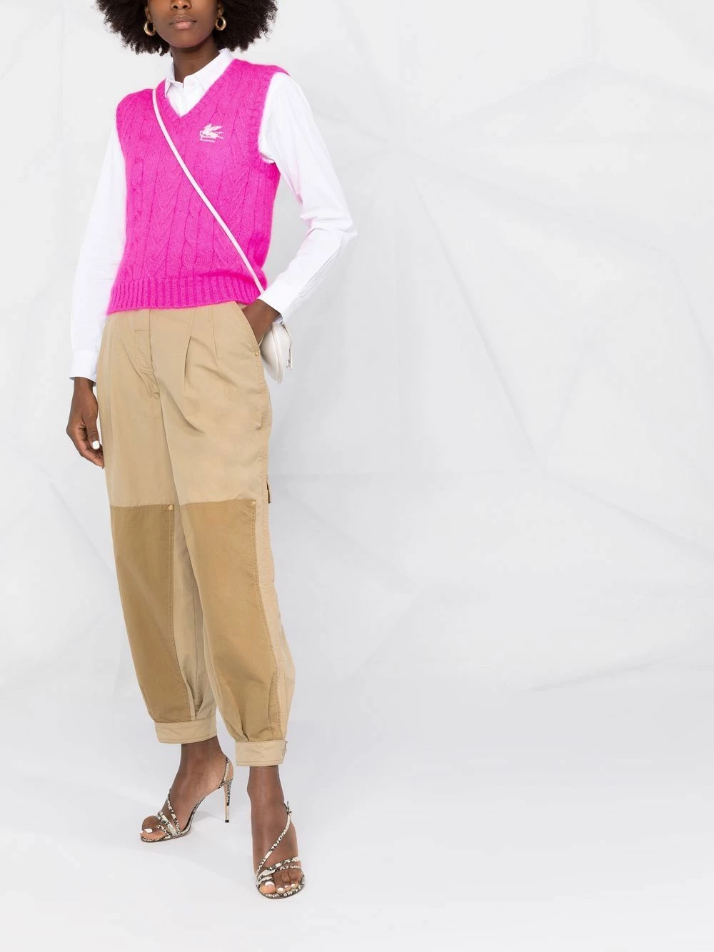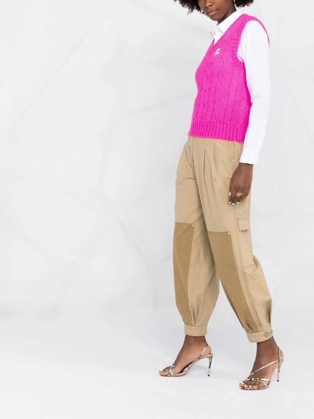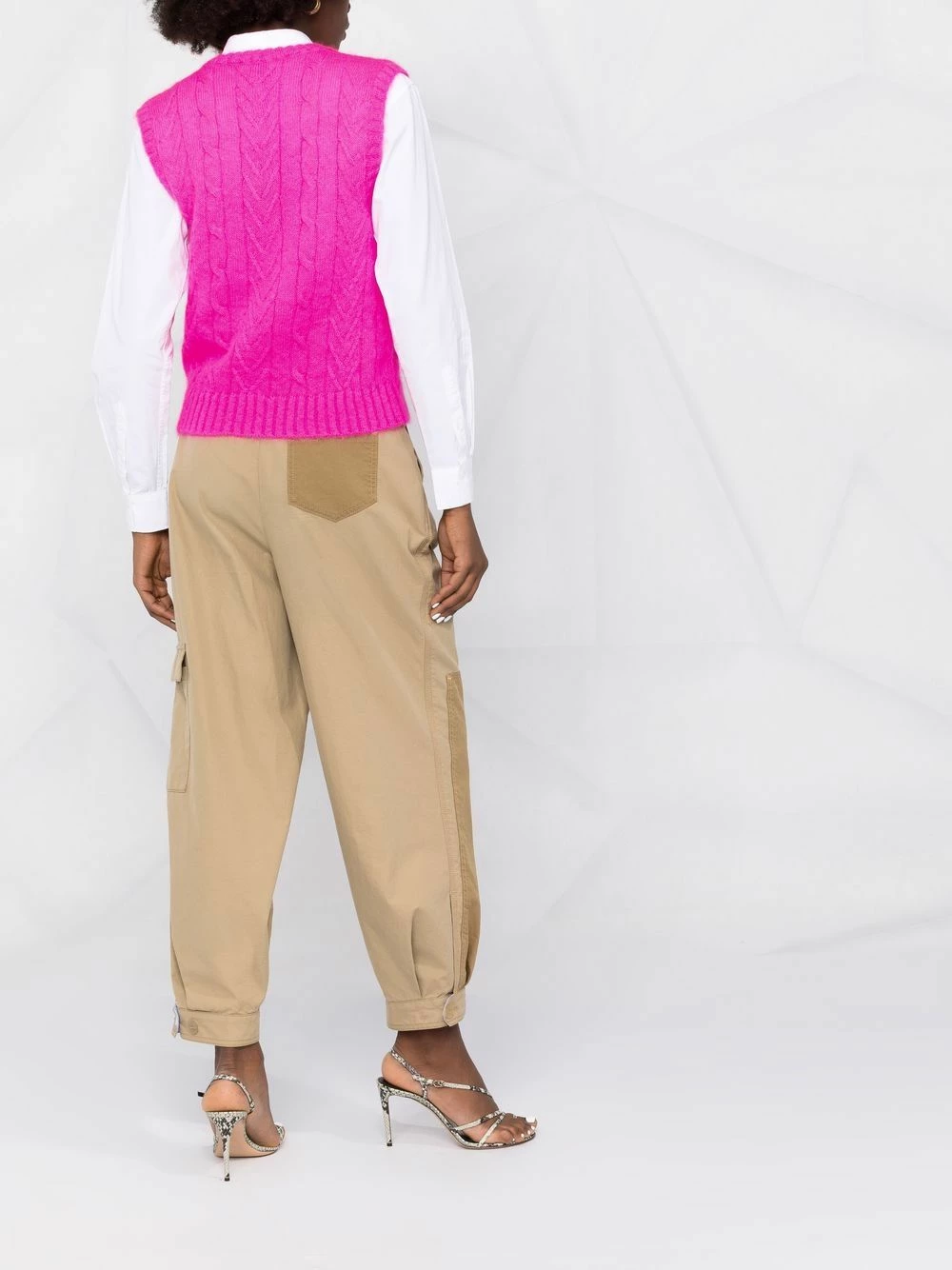 Boutonnière croisée, revers pointus, manches longues, poches latérales kangourou. Couleur : violet.