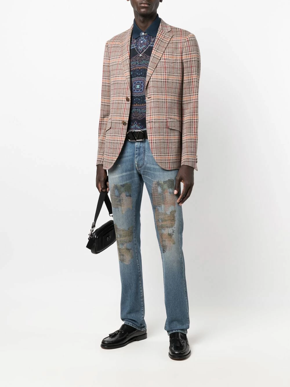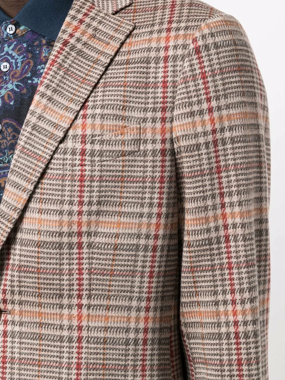 Coupe classique, carreaux Prince de Galles, revers crantés, boutonnière sur le devant, manches longues, poche passepoilée sur la poitrine, deux poches latérales à rabat, double fente arrière.