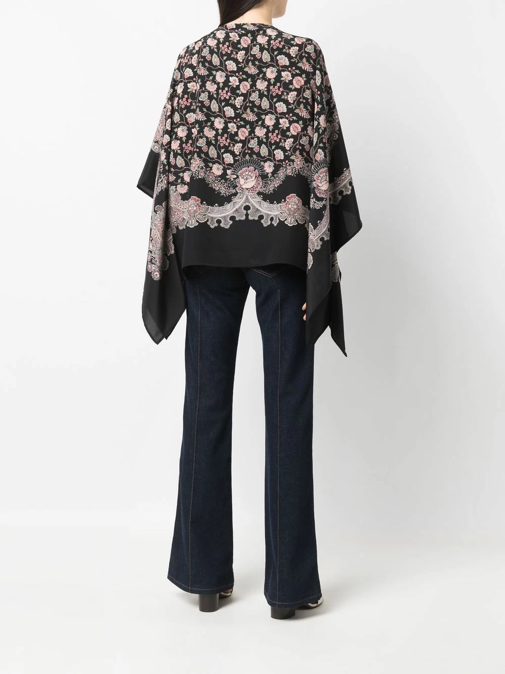 Motif de fleurs, design drapé, ourlet droit. Matière : soie.