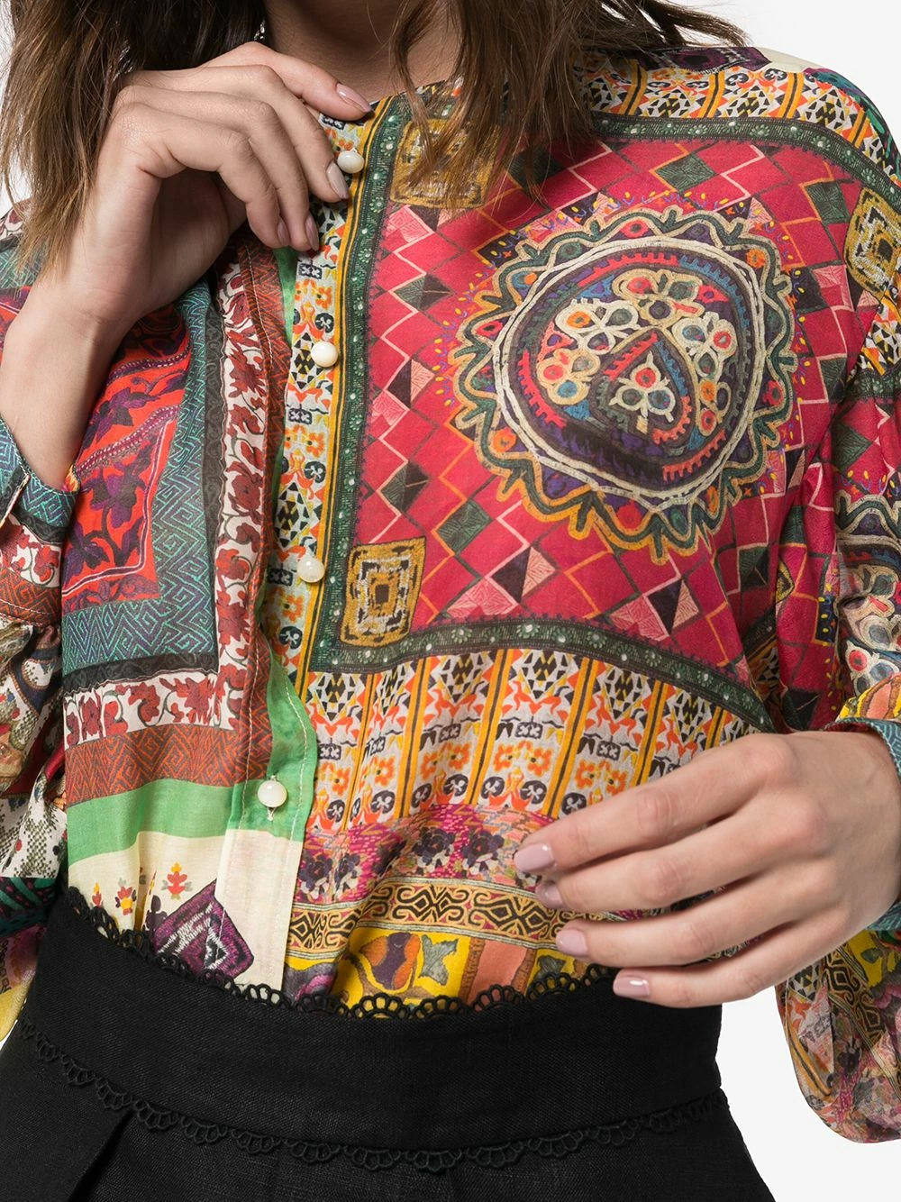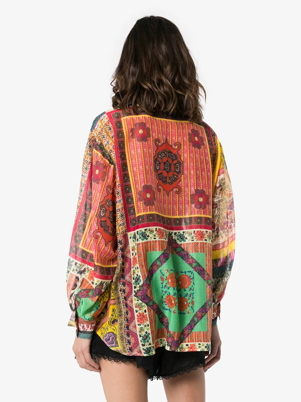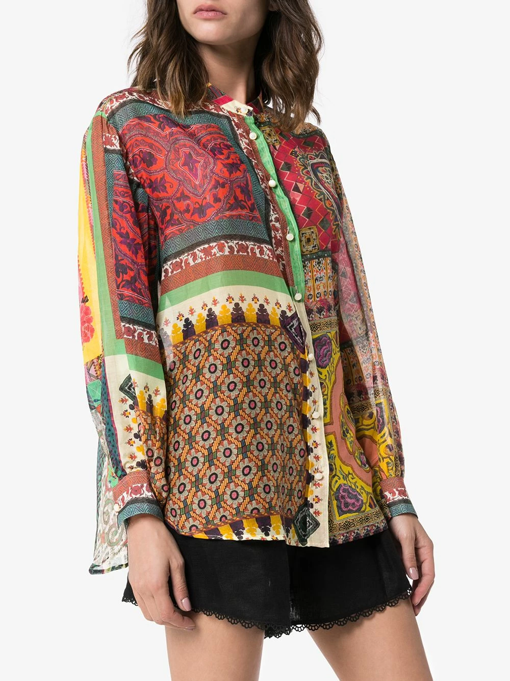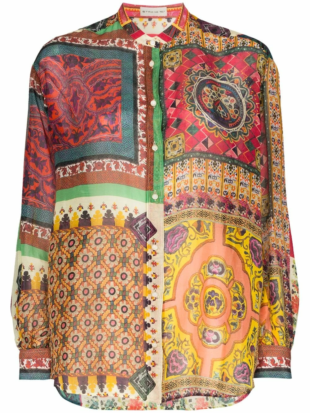 Chemise à imprimé patchwork Etro avec encolure ronde, boutonnière sur le devant, manches longues, poignets boutonnés, imprimé patchwork et aspect souple. Couleur : multicolore.