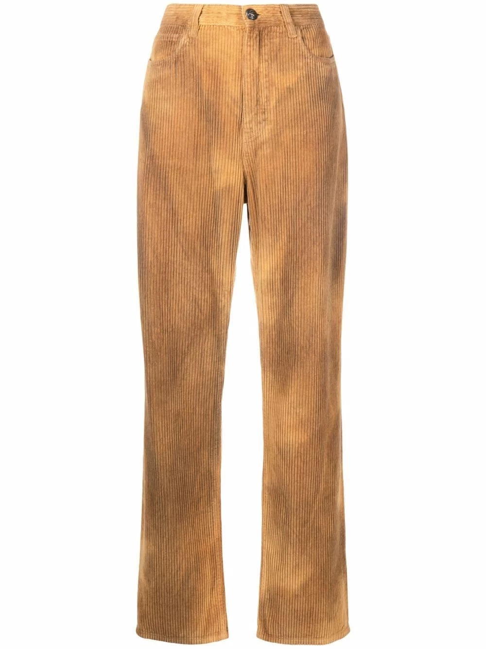 Velours côtelé, taille haute, coupe droite, patch logo sur l’arrière, fermeture boutonnée, cinq poches classiques. Matière : coton.