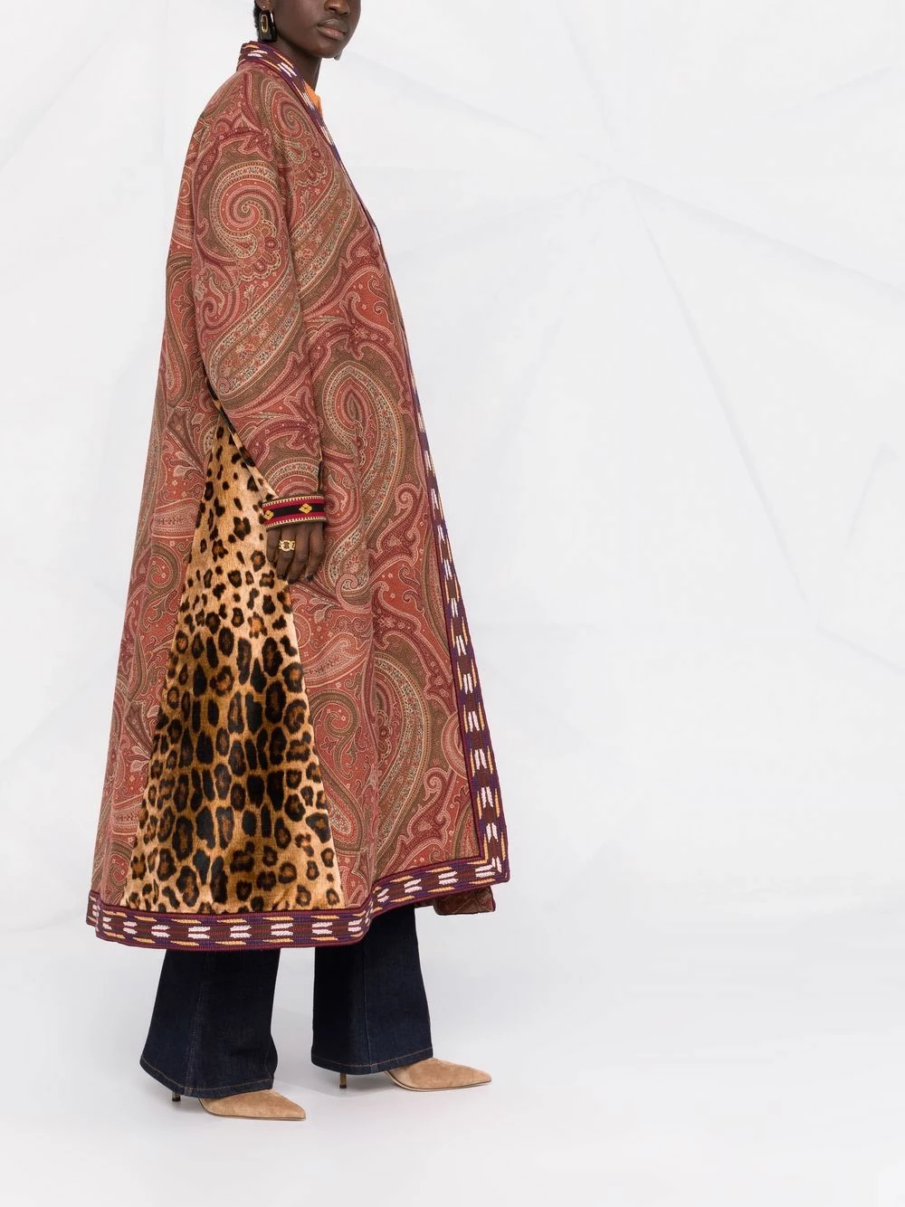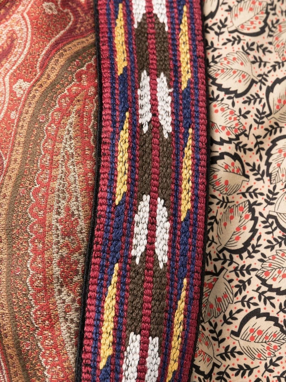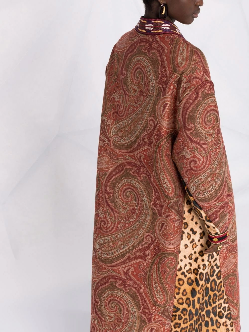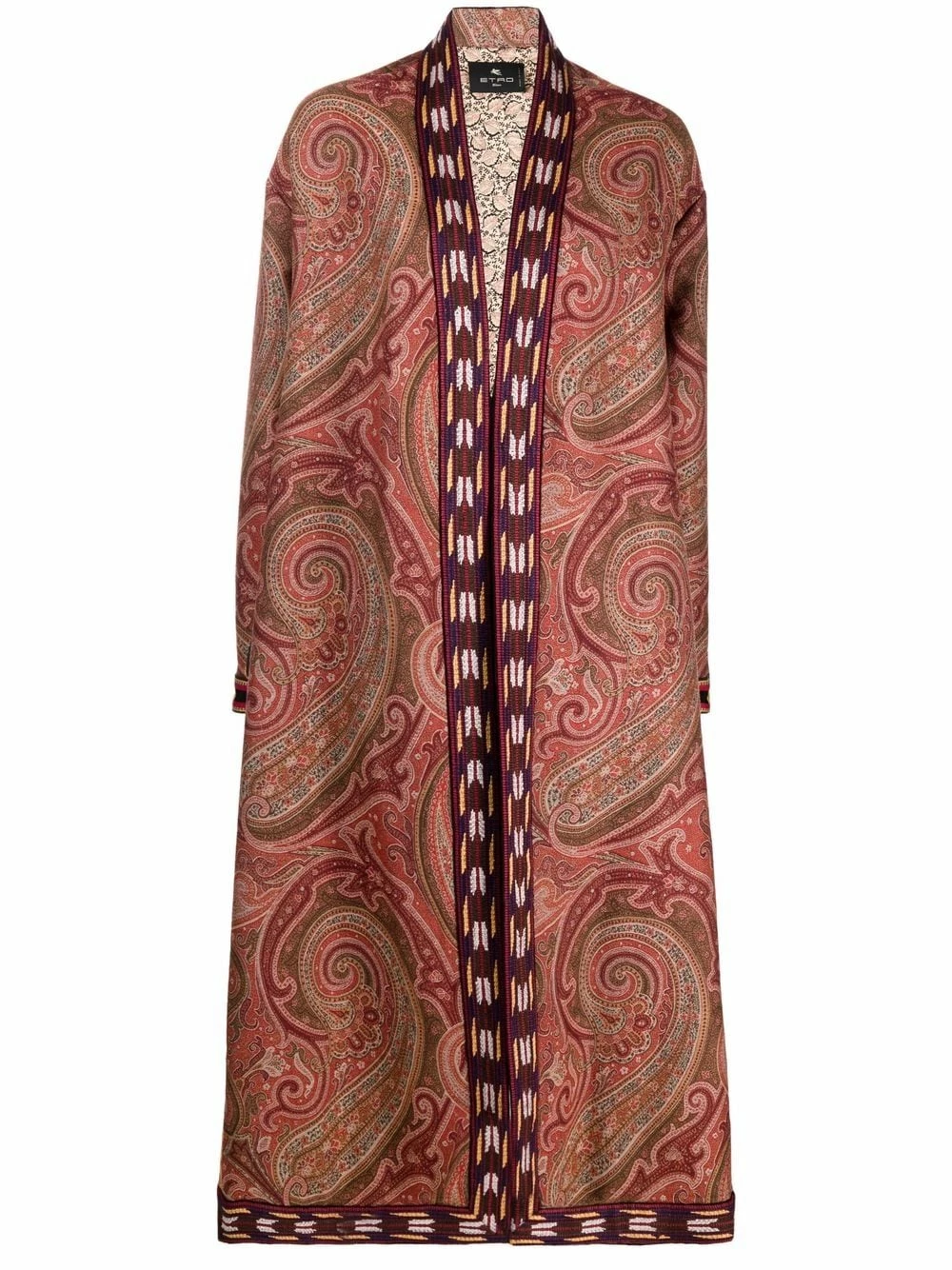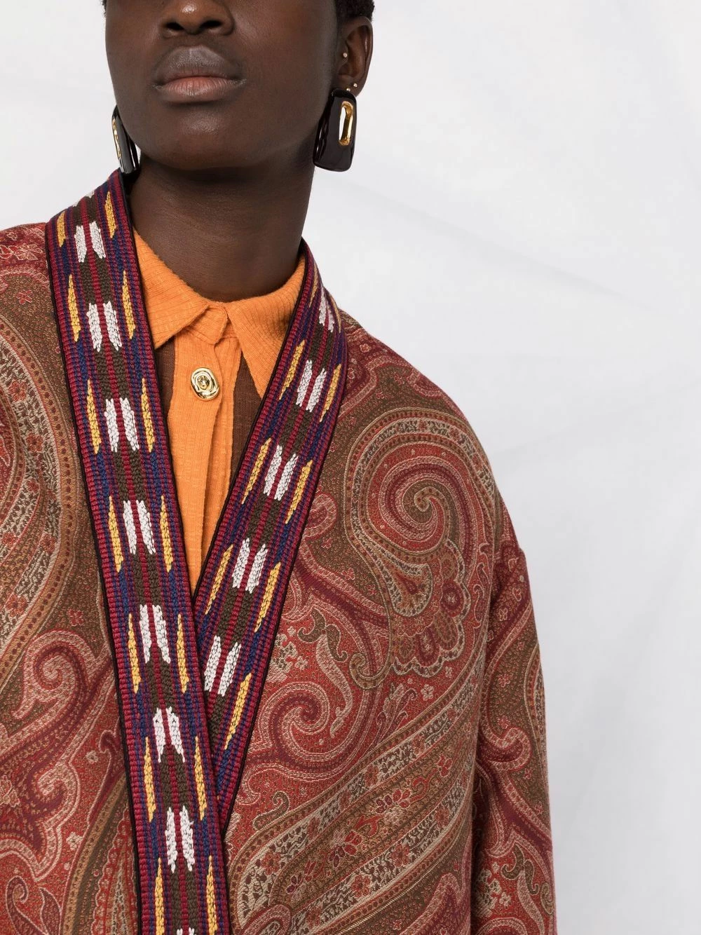 Motif cachemire, bordure contrastante, design sans col, manches longues, empiècements contrastants. Matière : coton mélangé.