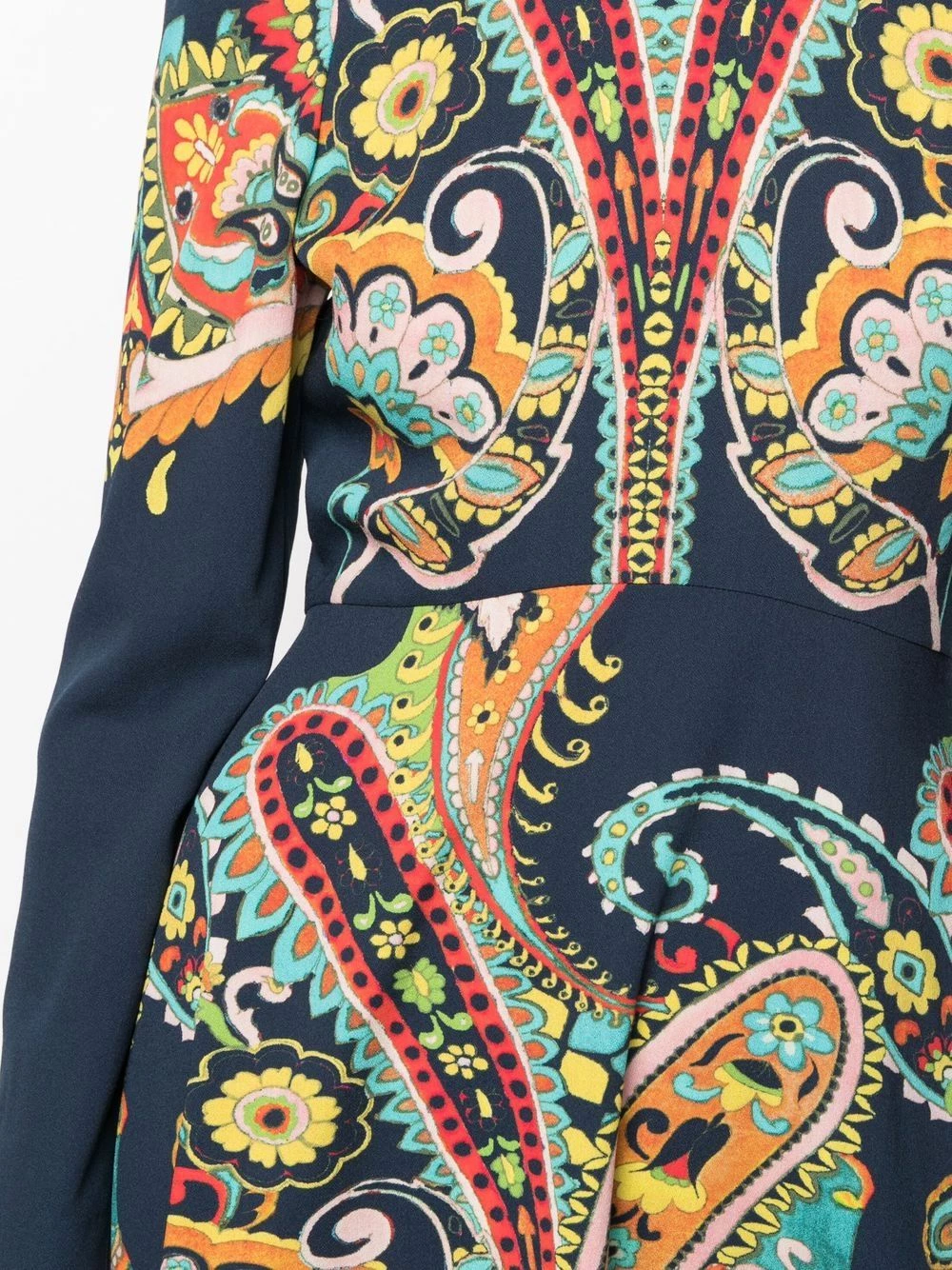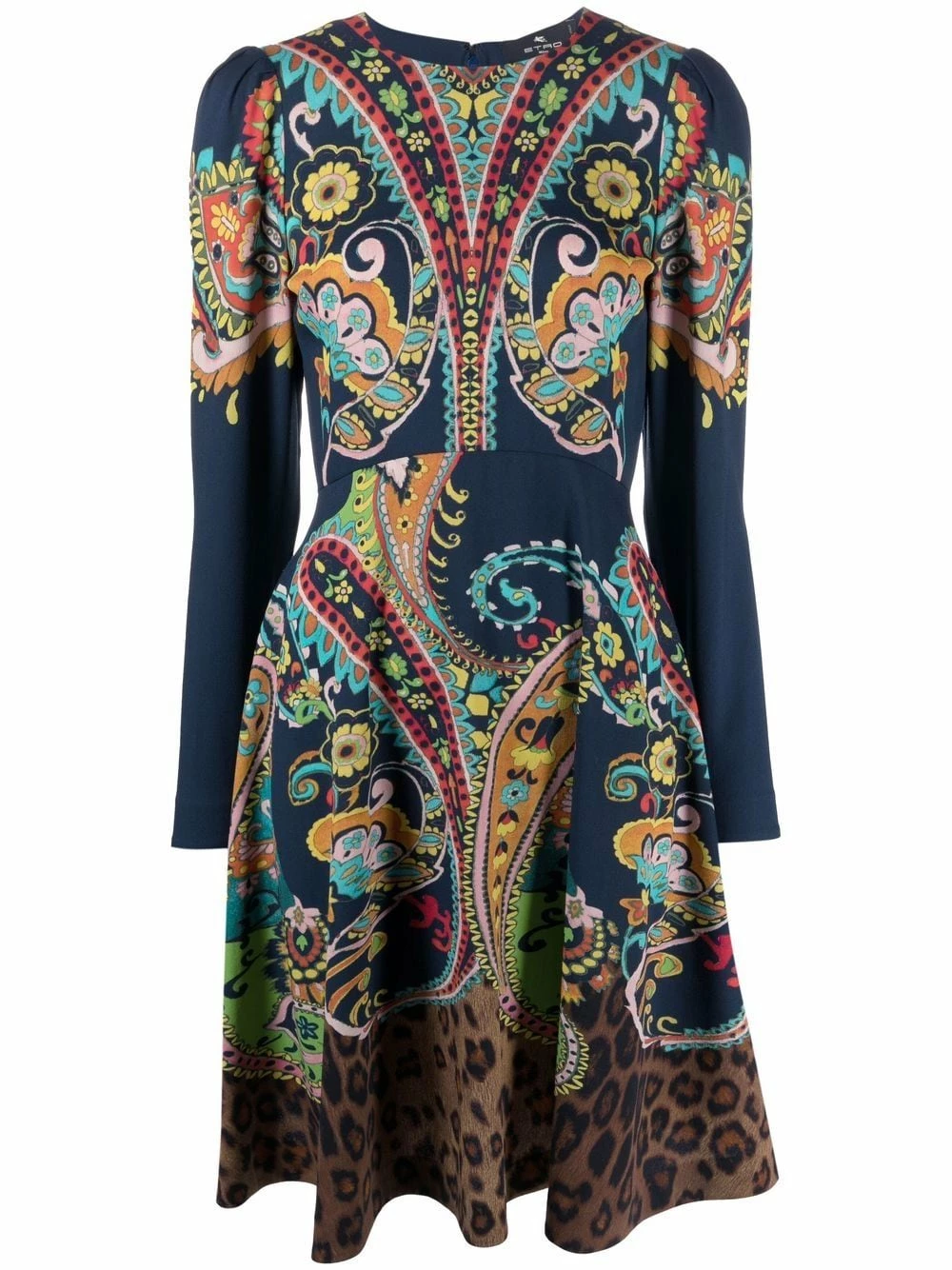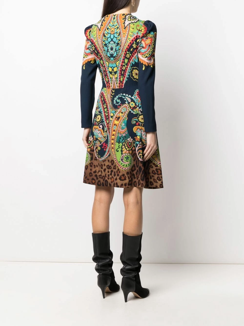 Mélange d’imprimés, encolure ronde, manches longues, ourlet évasé. Matière : laine.