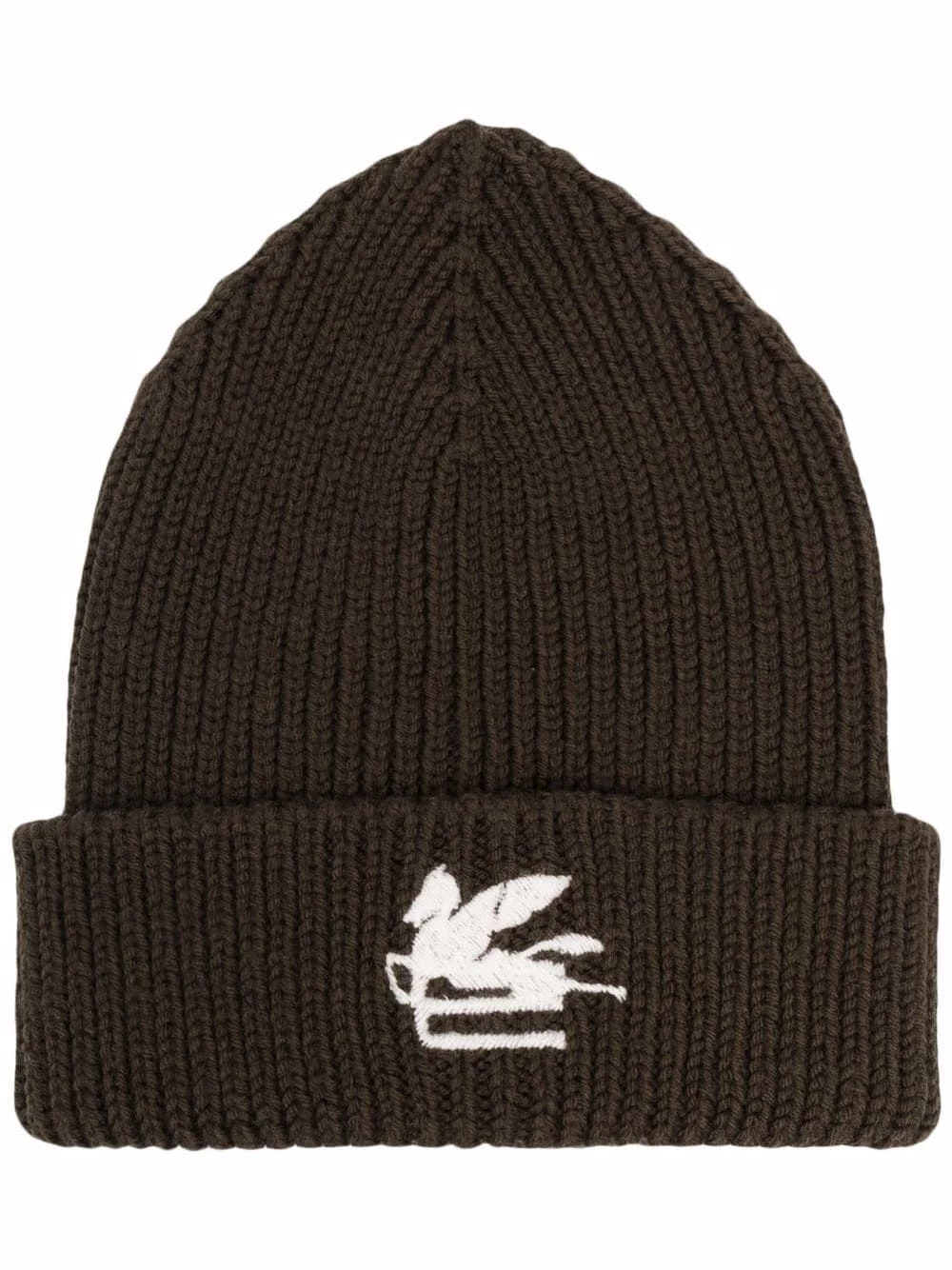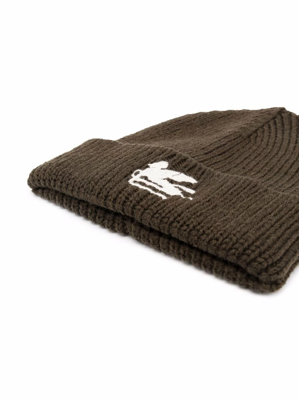 Logo brodé, maille intarsia, bord retroussé. Matière : laine.
