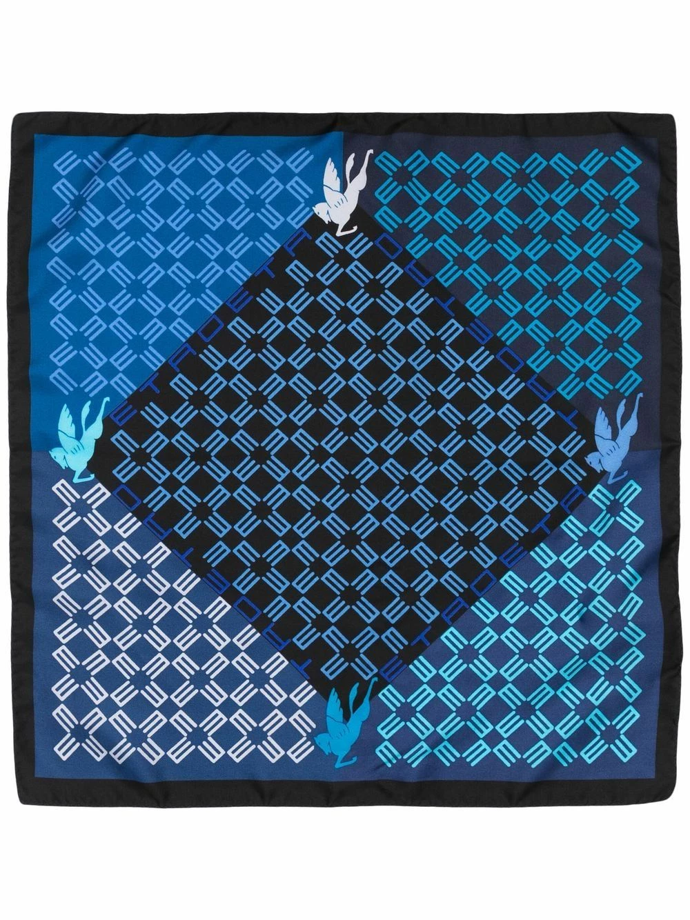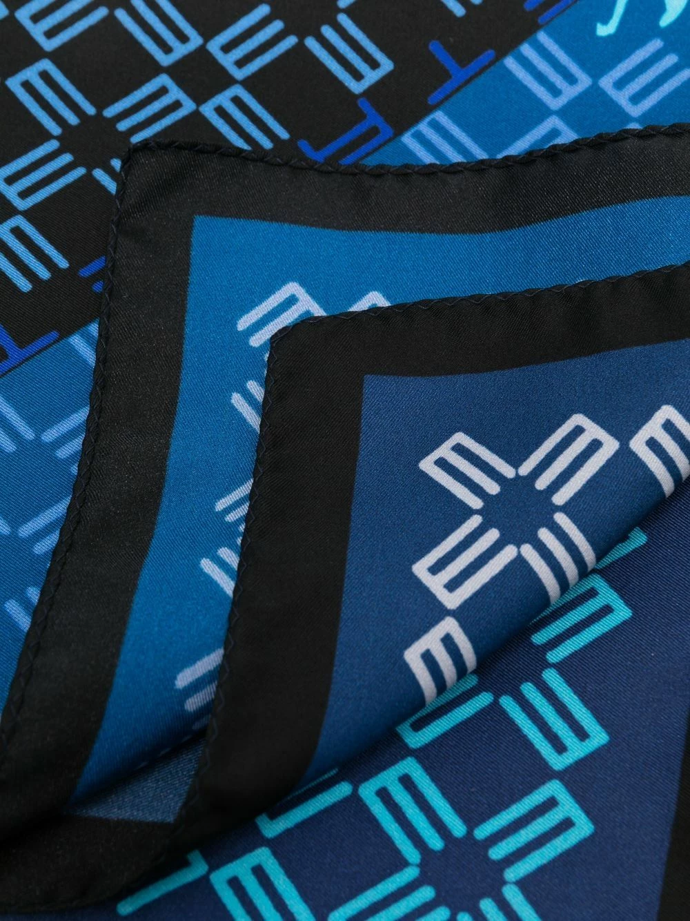 Imprimé monogrammé, motif géométrique, ourlet droit. Couleur : bleu. Matière : soie.