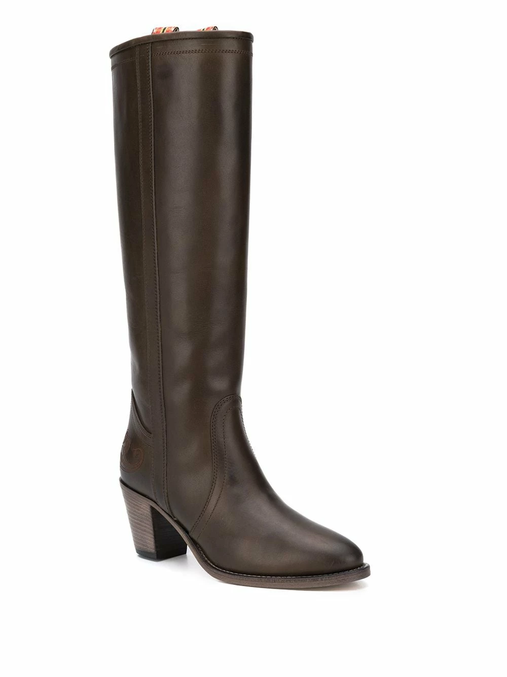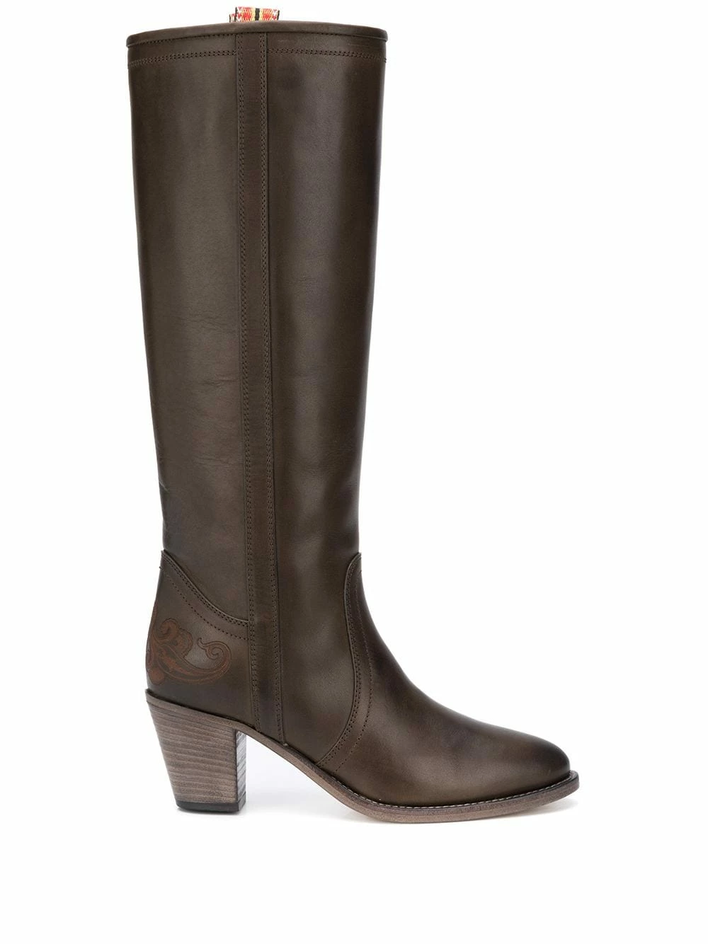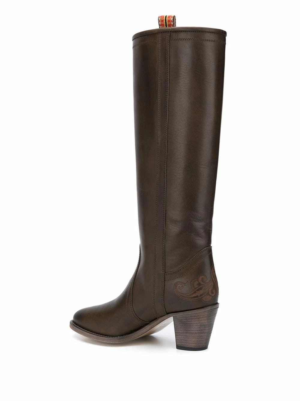 Bottes à bout rond Etro avec bout en amande, design à enfiler et talon mi-haut épais. Couleur : marron.