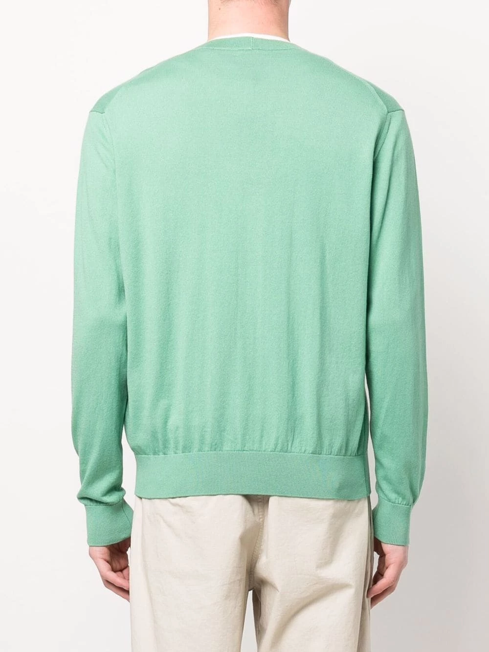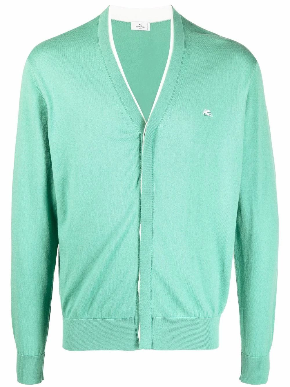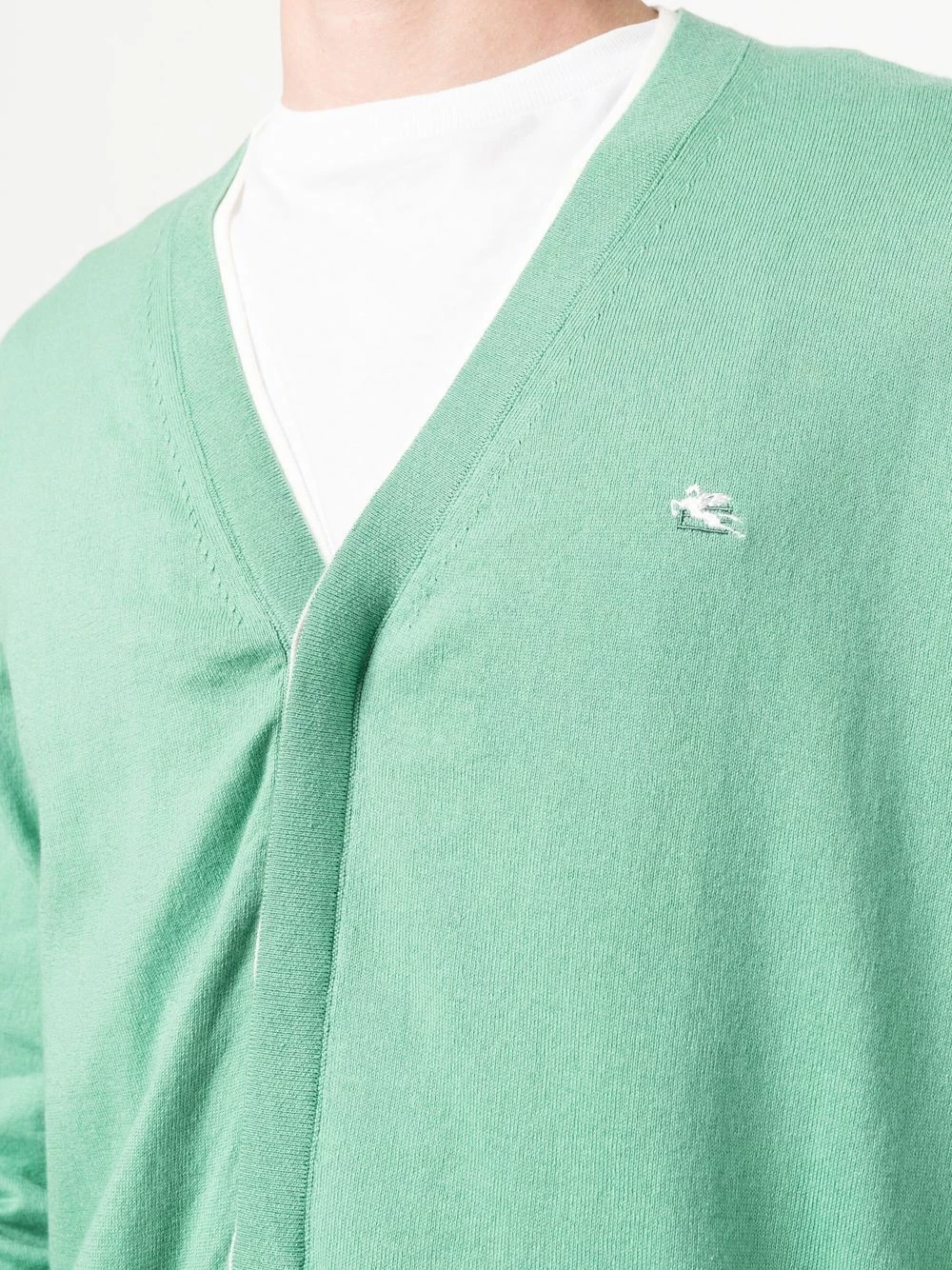 Logo brodé sur la poitrine, col v, fermeture boutonnée, manches longues, ourlet droit. Matière : coton.