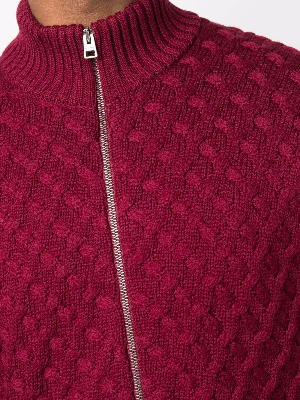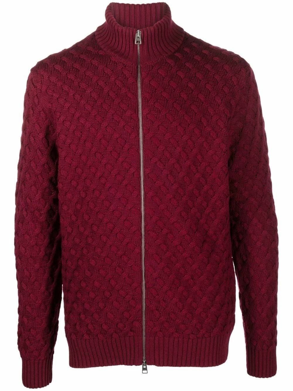 Col montant, fermeture zippée devant, manches longues, poignets nervurés, ourlet nervuré. Couleur : rouge.