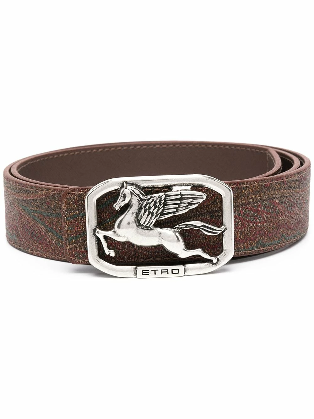 Ornements argentés, motif cachemire, détail de boucle à logo, trous percés. Couleur : marron.