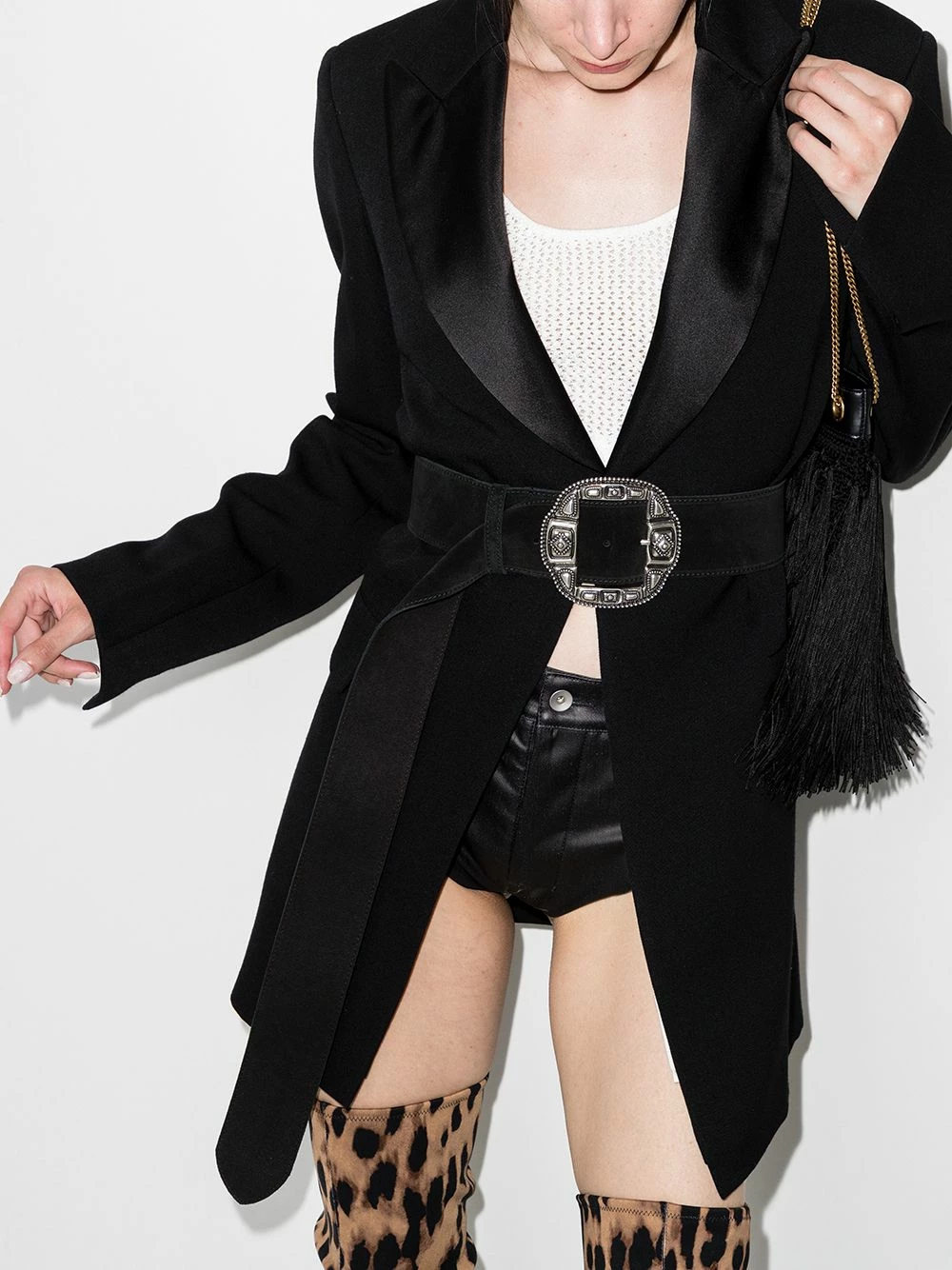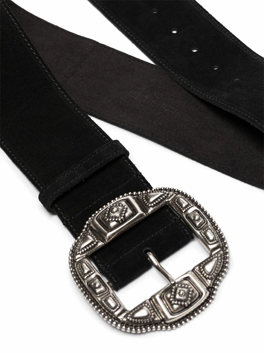Fermeture à boucle argentée, taille ajustable. Couleur : noir. Matière : daim.