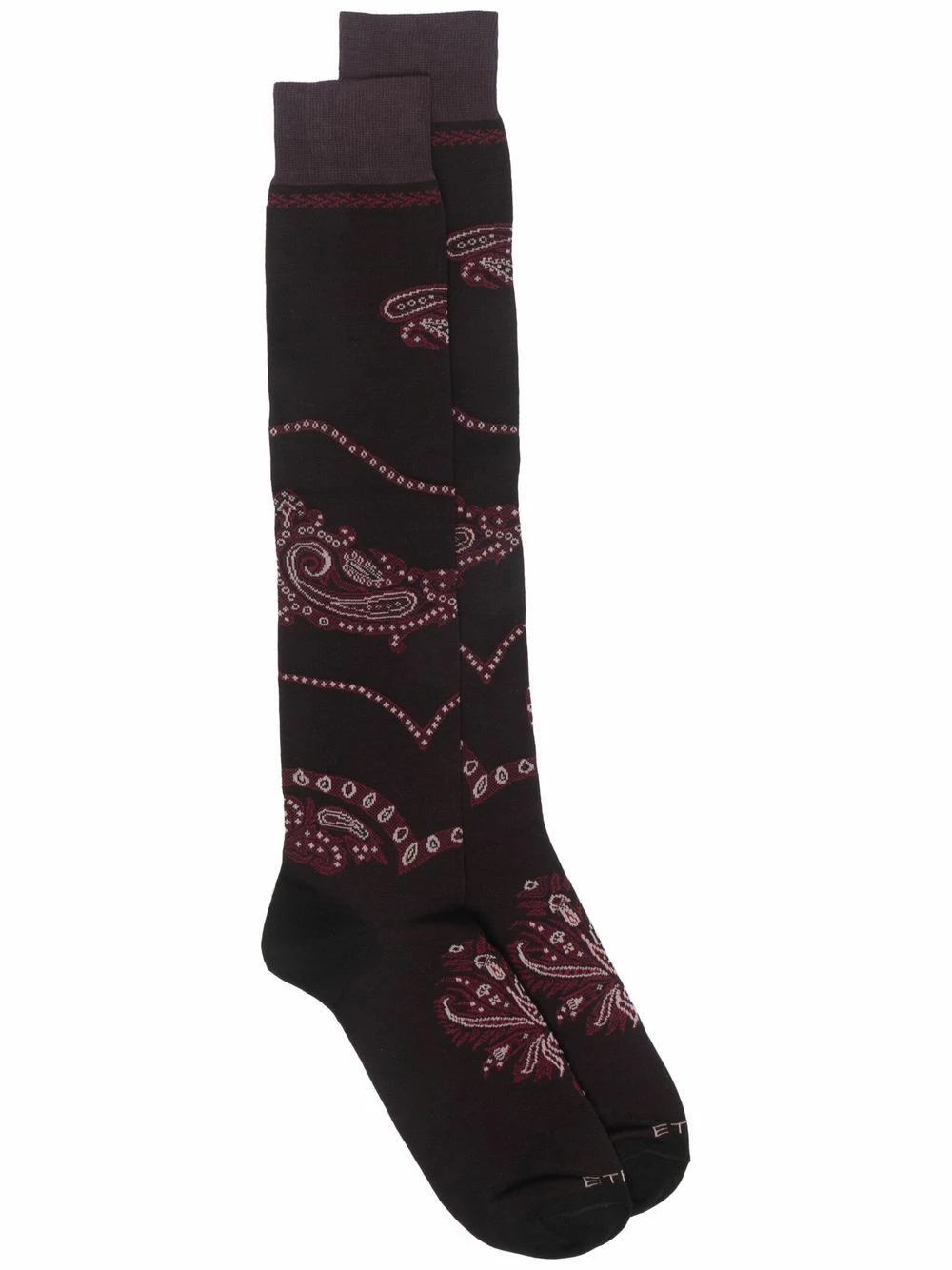 Motif cachemire, motif intarsia, hauteur genou. Matière : coton mélangé.