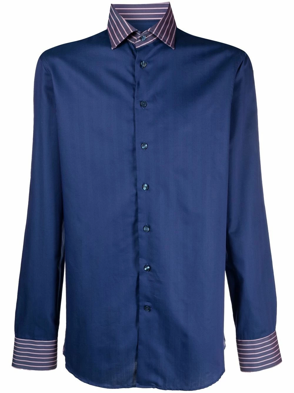 Bordures rayées, col classique, boutonnière sur le devant, manches longues, poignets boutonnés, ourlet incurvé.