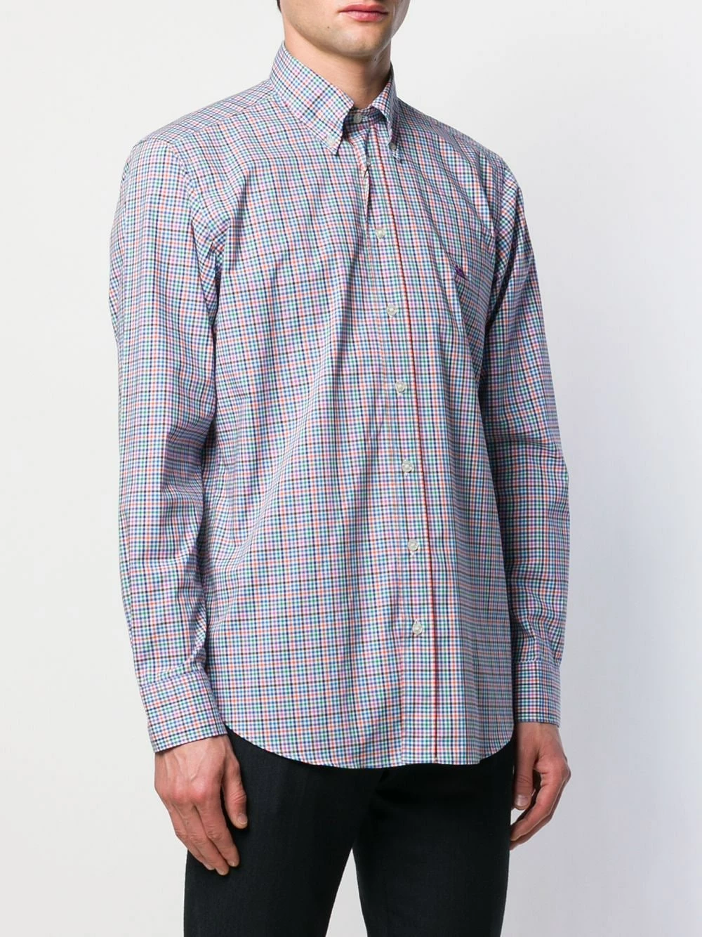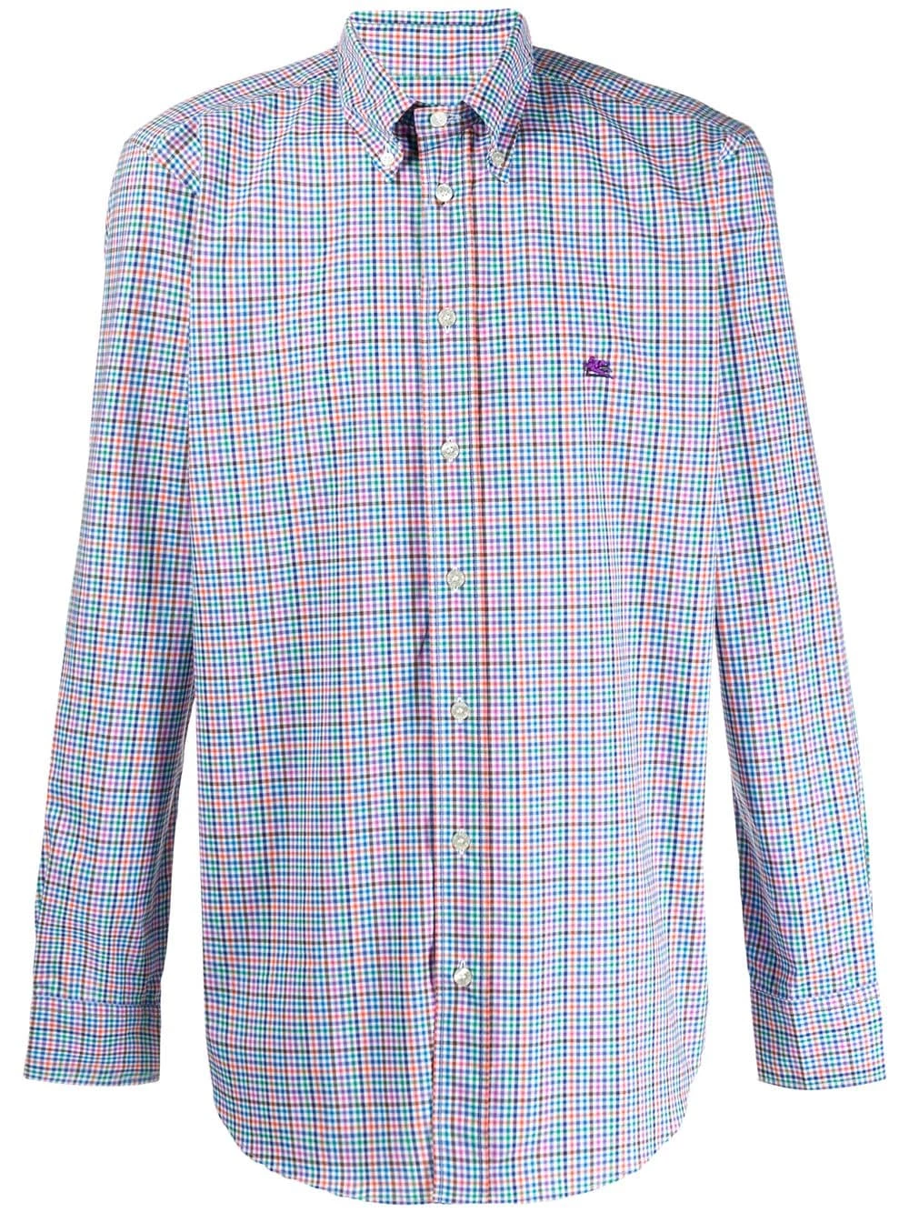 Chemise à carreaux en coton Etro avec col boutonné, manches longues, poignets boutonnés et forme détendue. Couleur : bleu.