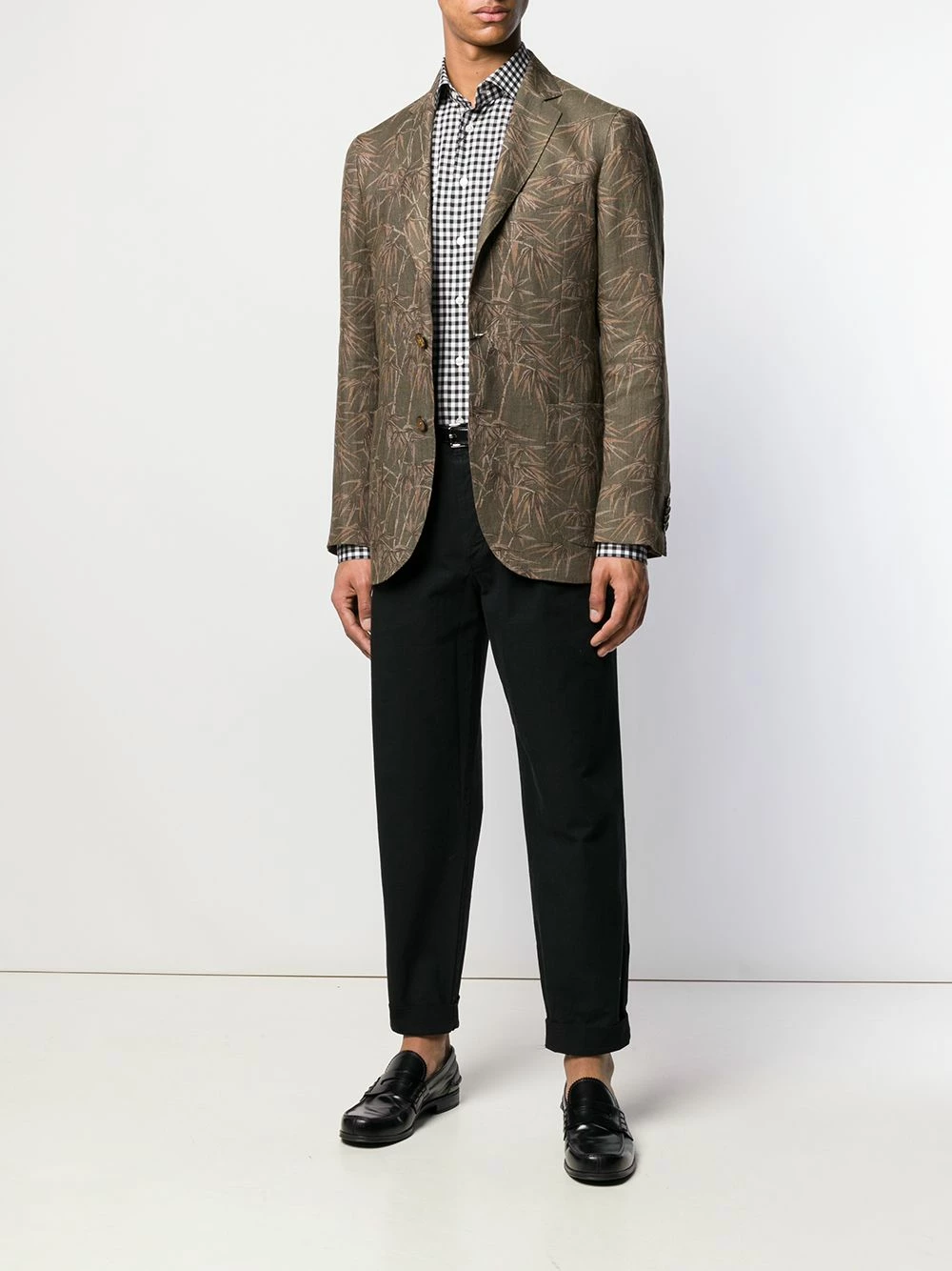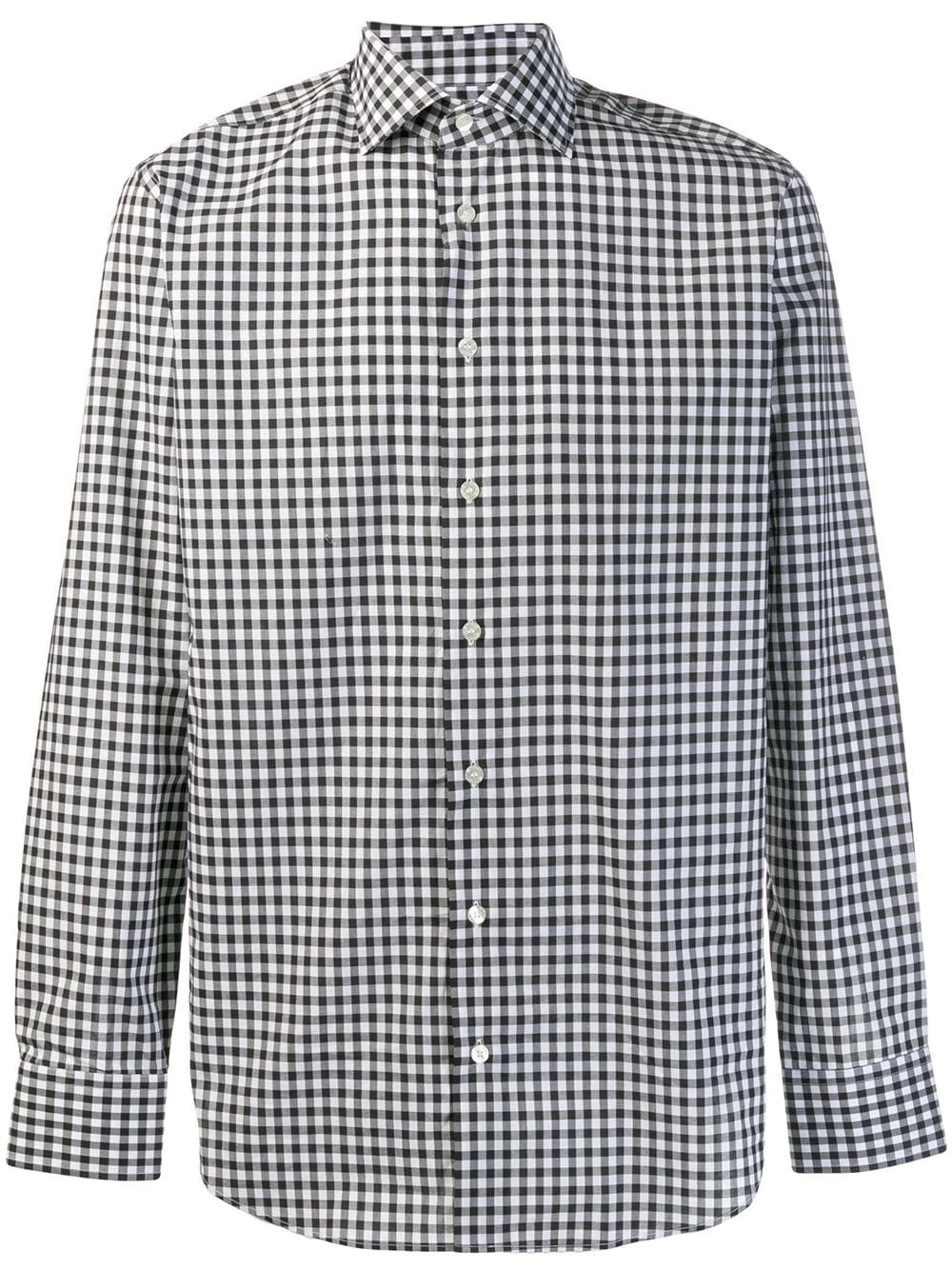 Chemise à carreaux en coton Etro avec col détachable, ourlet incurvé, manches longues et patte de boutonnage sur le devant. Couleur : noir.
