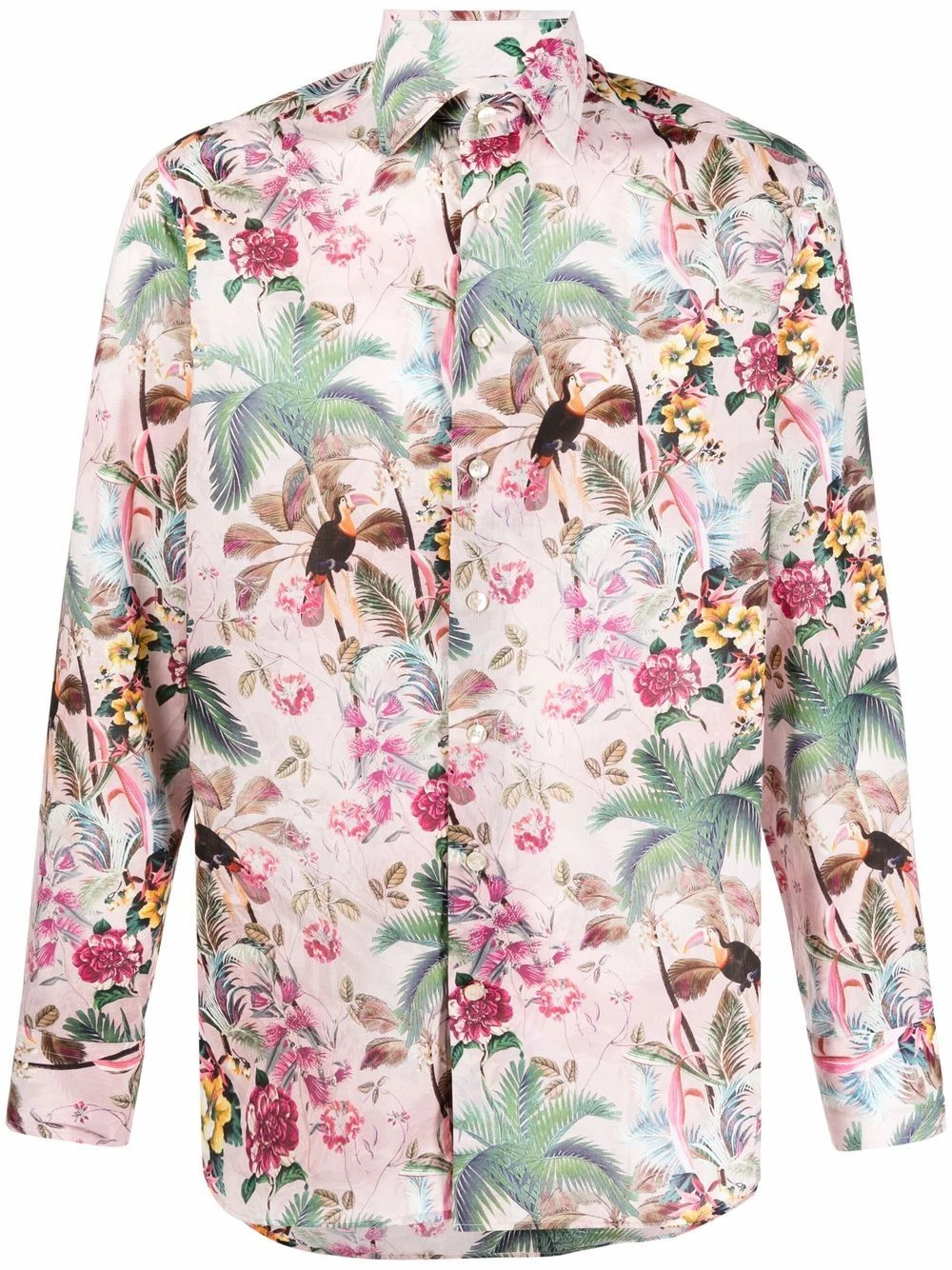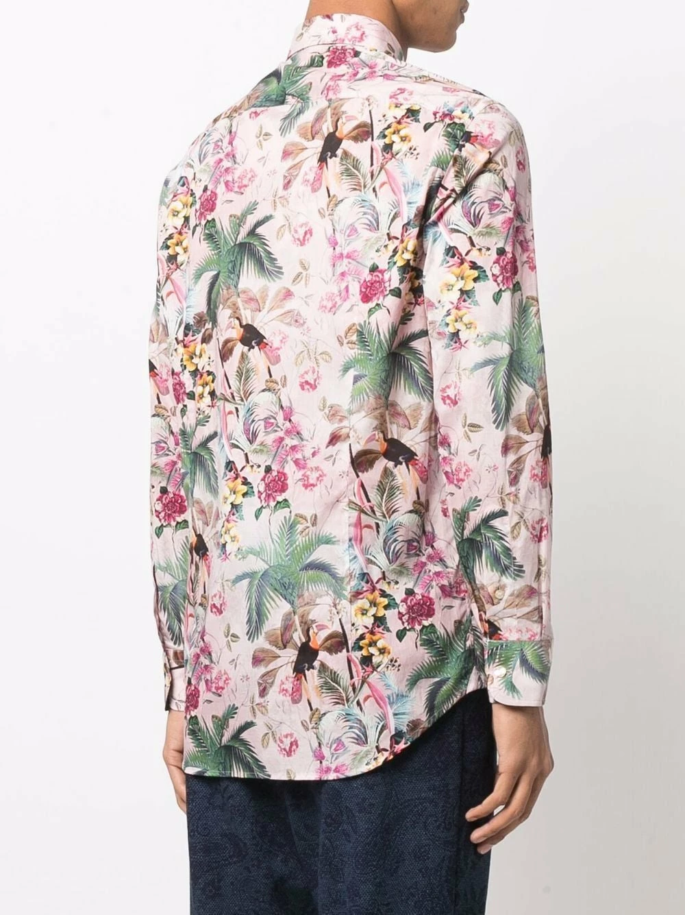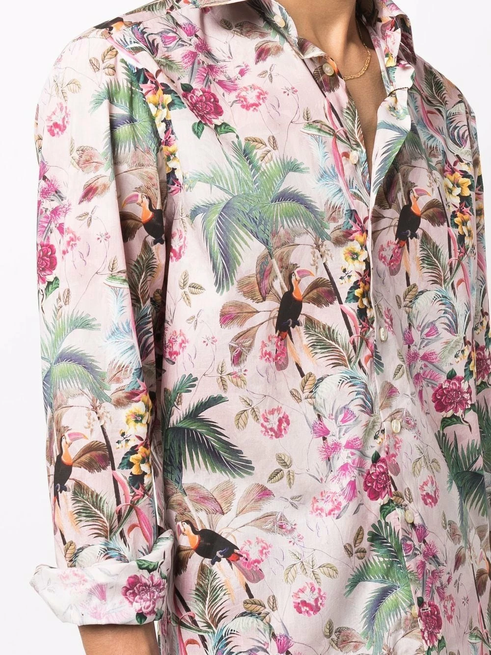 Motif de fleurs, col classique, boutonnière sur le devant, poignets boutonnés. Couleur : multicolore. Matière : coton.