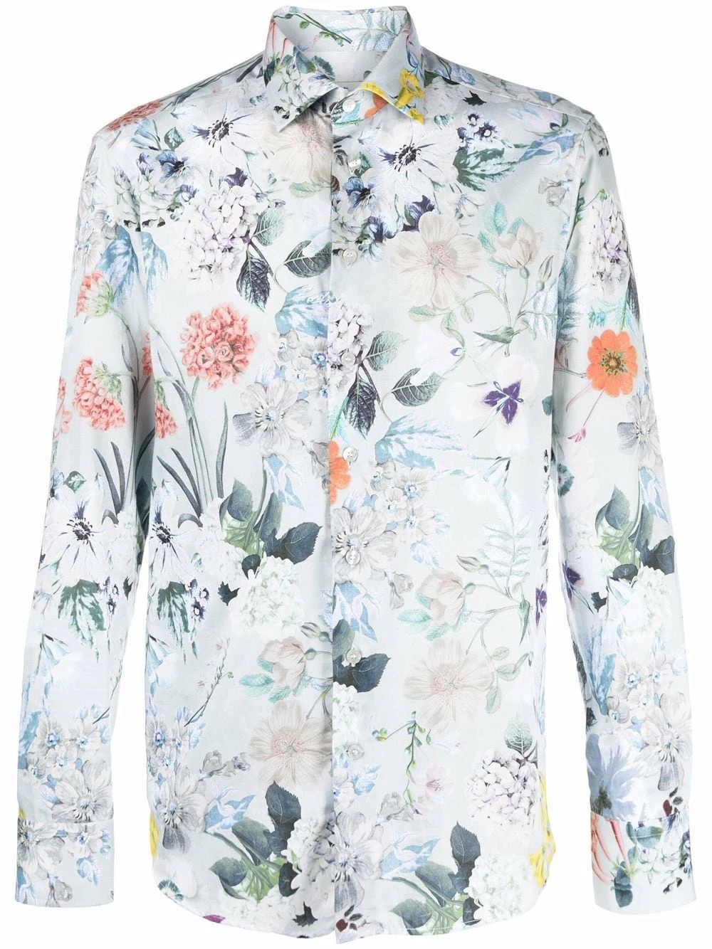 Motif de fleurs, col classique, patte de boutonnage sur le devant, manches longues, poignets boutonnés, ourlet incurvé. Matière : coton.