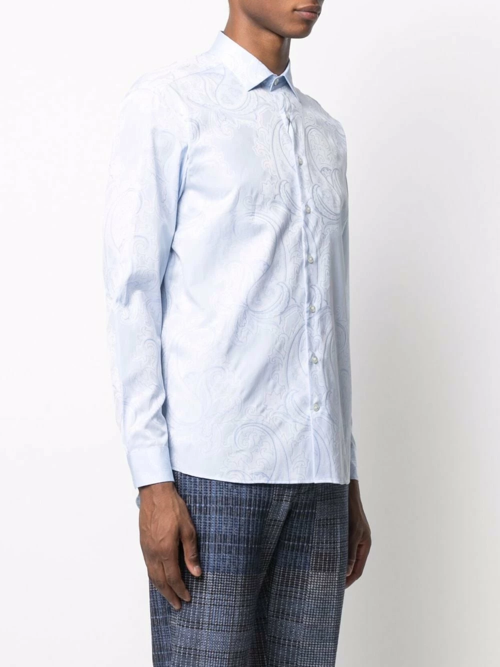 Motif cachemire, col classique, boutonnière sur le devant, manches longues, poignets boutonnés, ourlet incurvé. Matière : coton.
