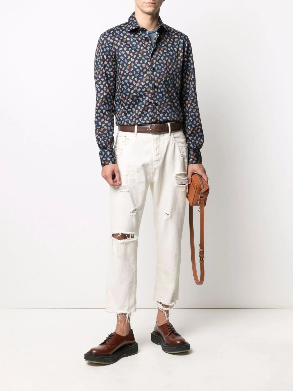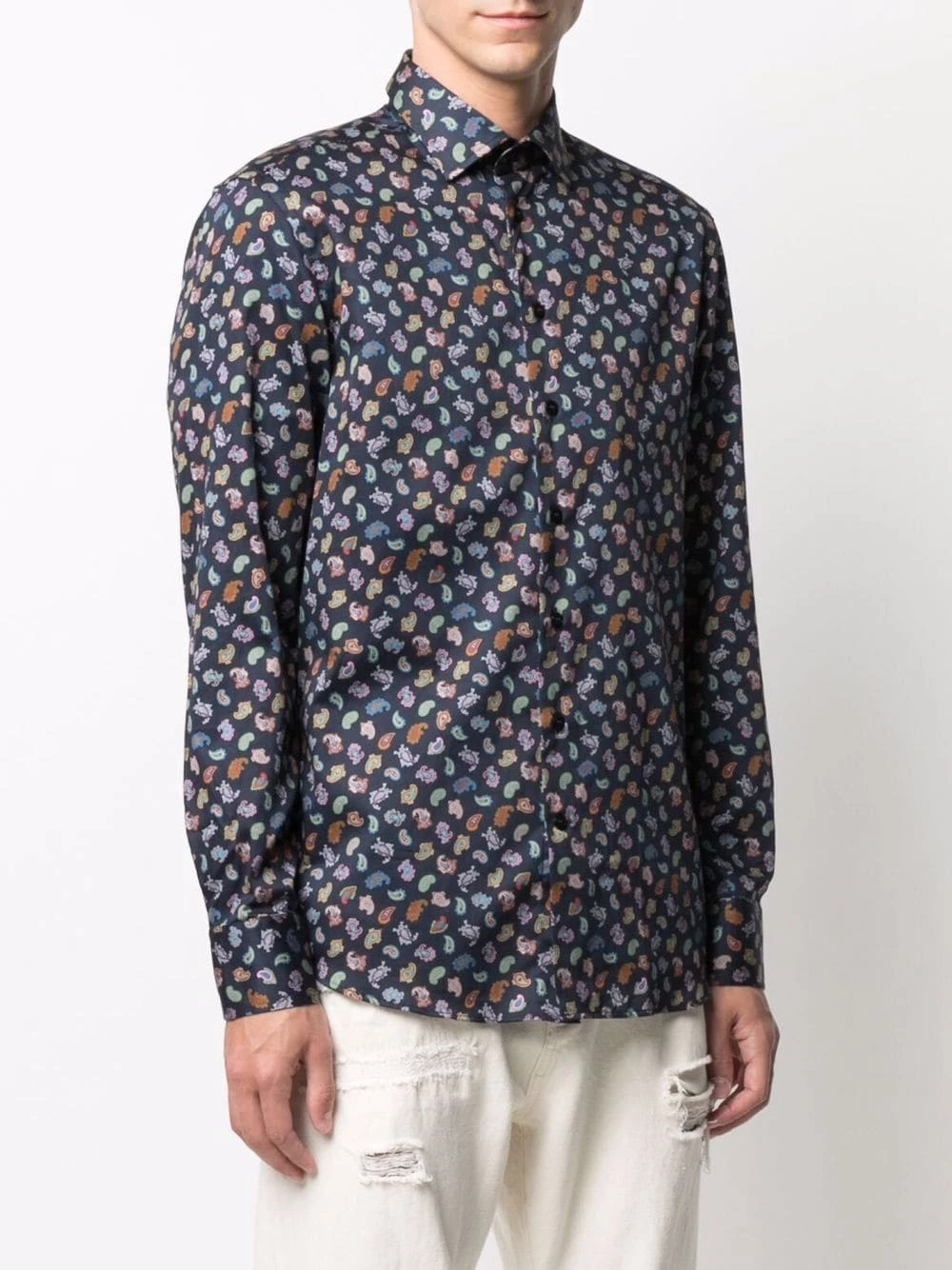 Motif cachemire, col classique, boutonnière sur le devant, manches longues, poignets boutonnés, ourlet incurvé. Matière : coton.