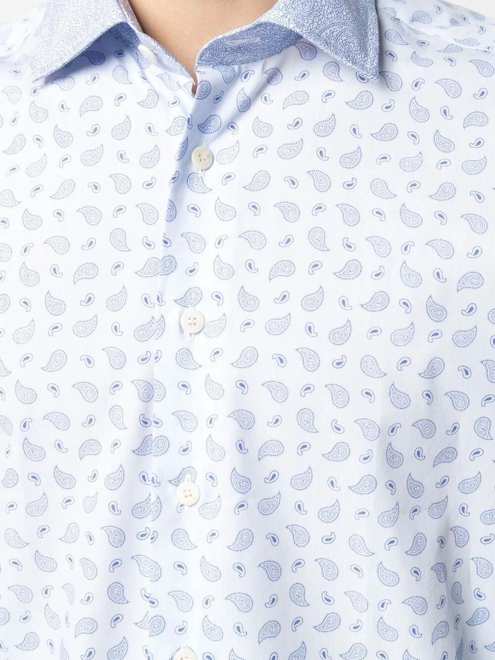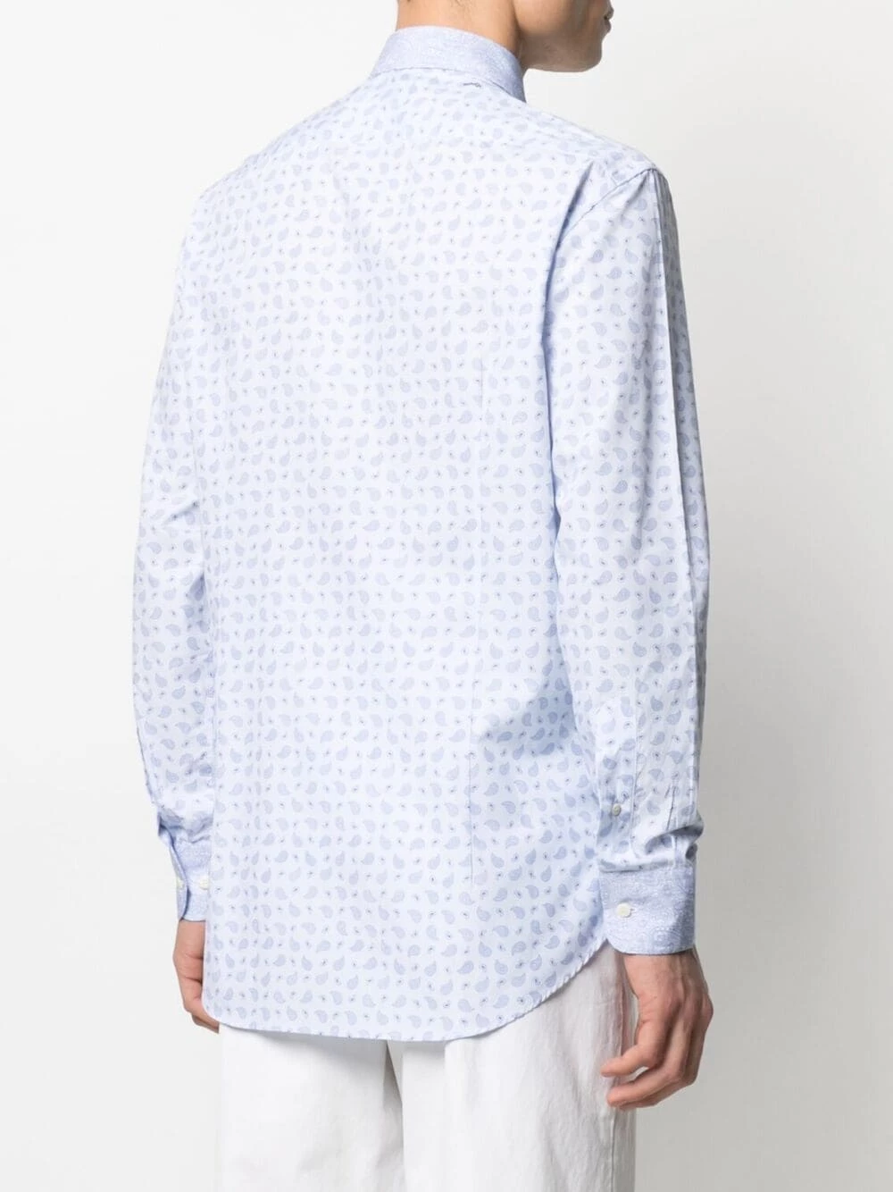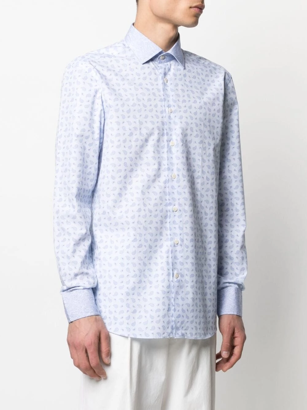Col pointu, boutonnière sur le devant, manches longues, poignets boutonnés, ourlet incurvé. Matière : coton.
