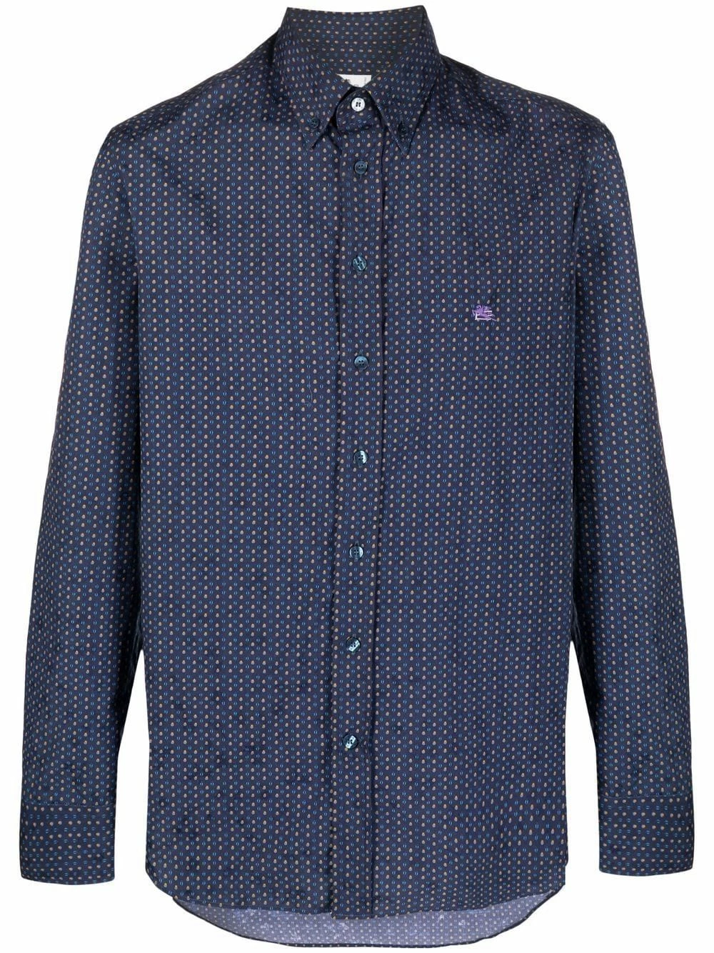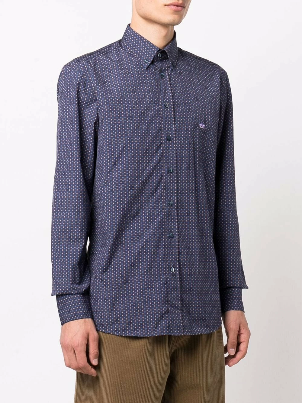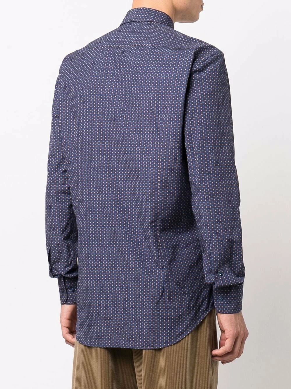 Multicolore, coton, imprimé graphique intégral, logo brodé sur la poitrine, col classique, boutonnière sur le devant, manches longues, poignets boutonnés, ourlet incurvé.