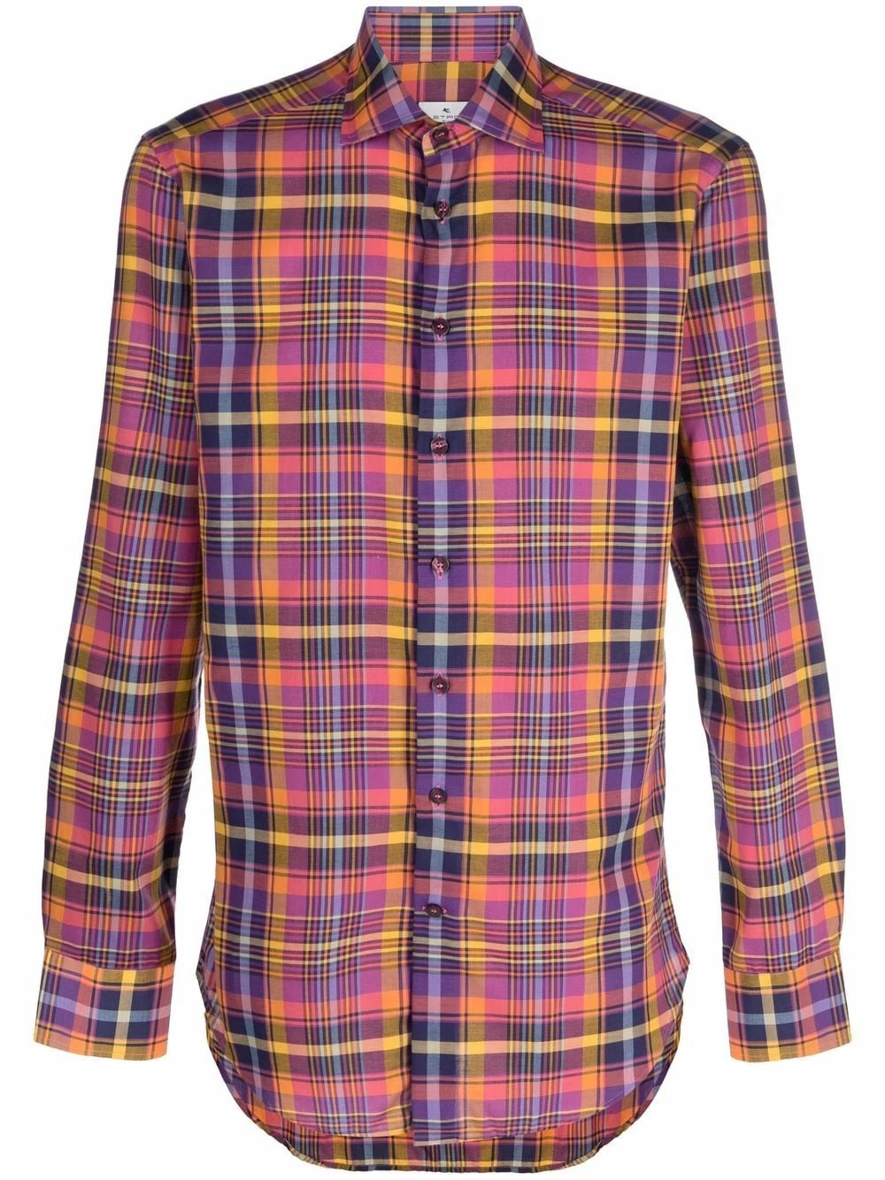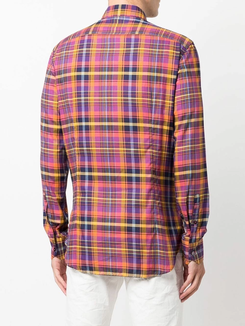 Motif tartan, col classique, boutonnière sur le devant, manches longues, poignets boutonnés, ourlet incurvé. Matière : coton.