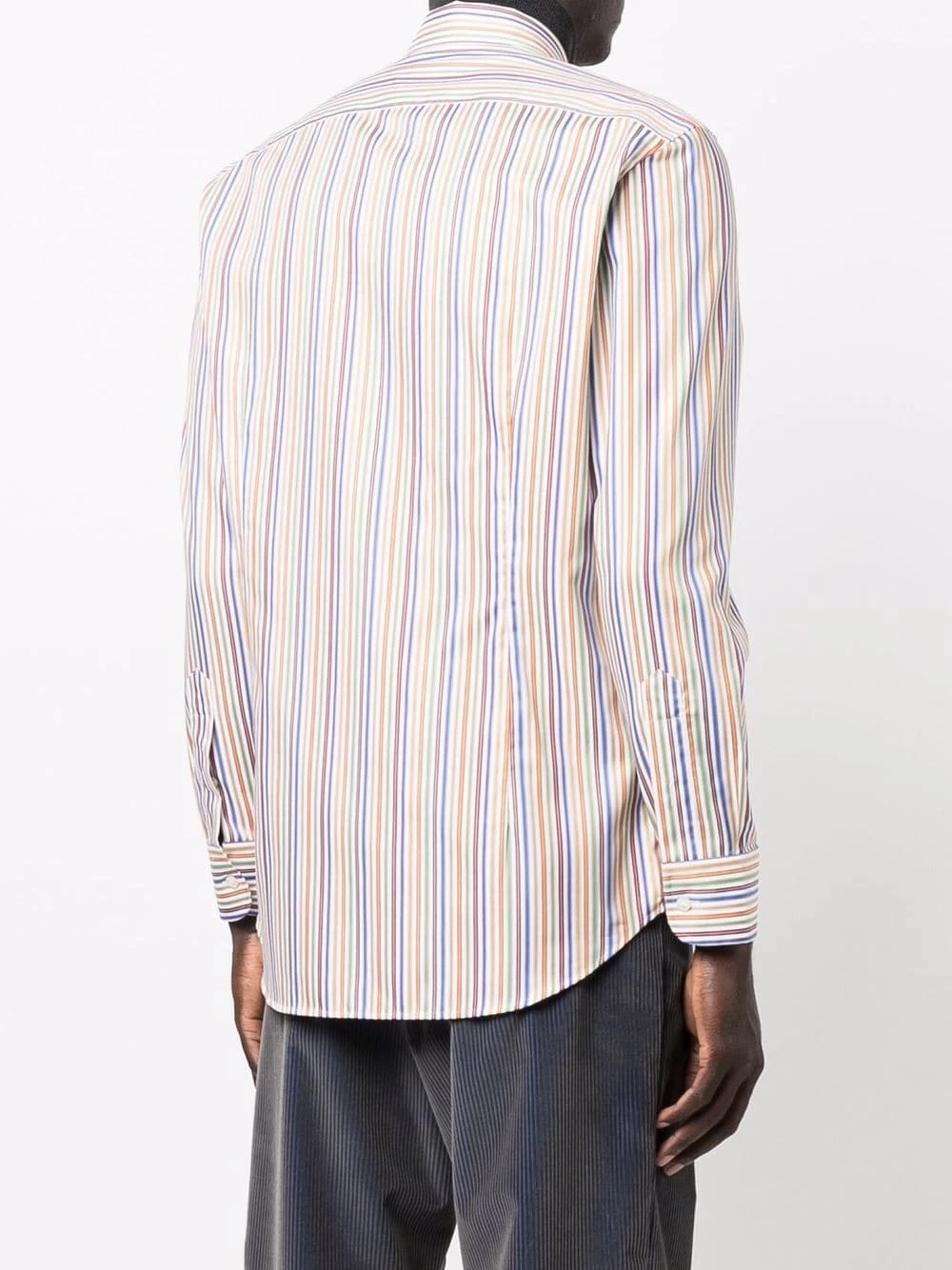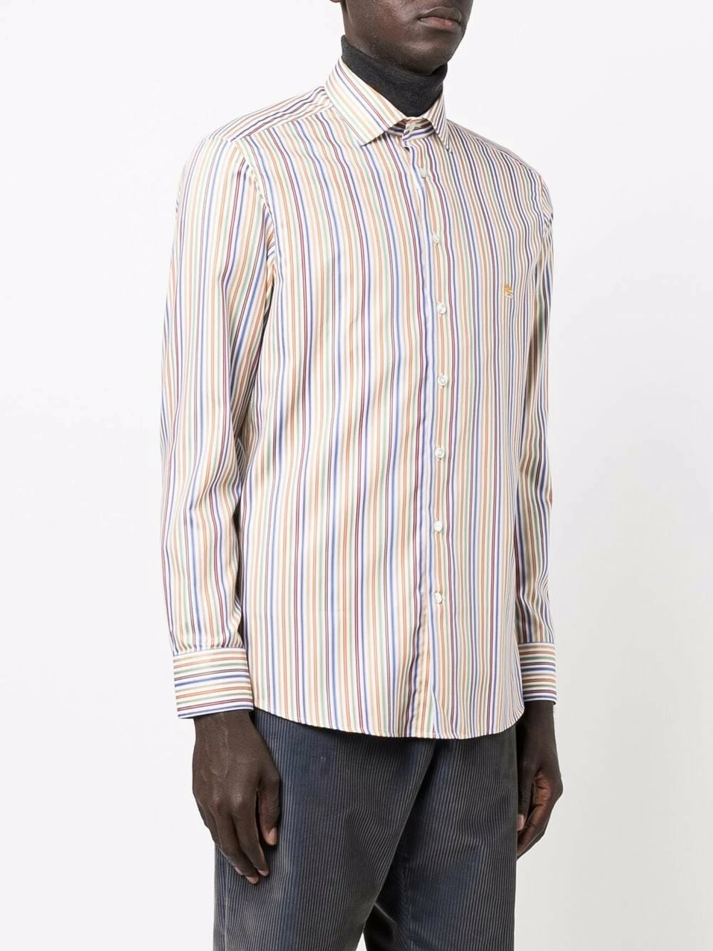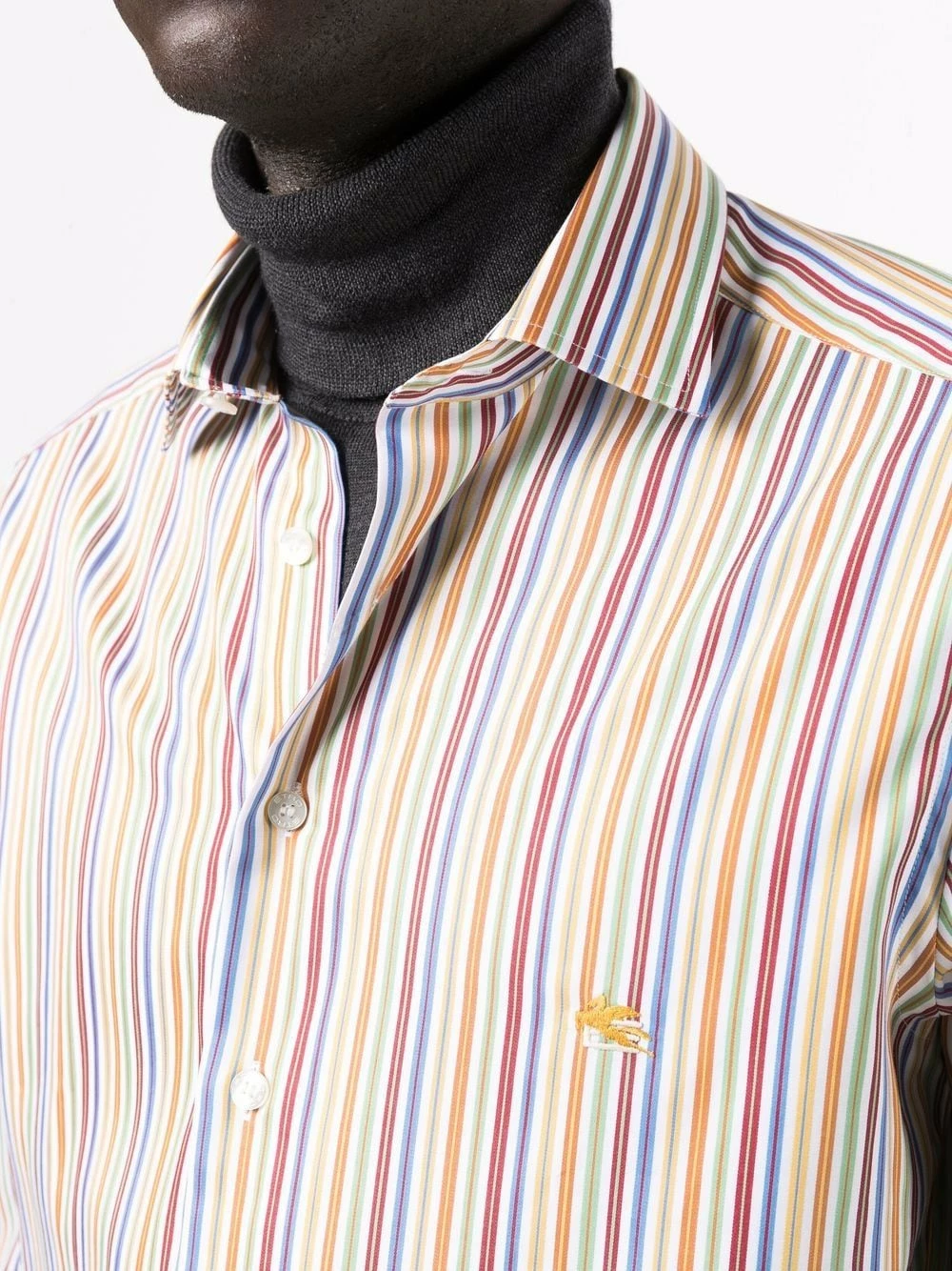 Rayures verticales, logo brodé, manches longues, boutonnière sur le devant, col classique. Couleur : vert. Matière : coton.