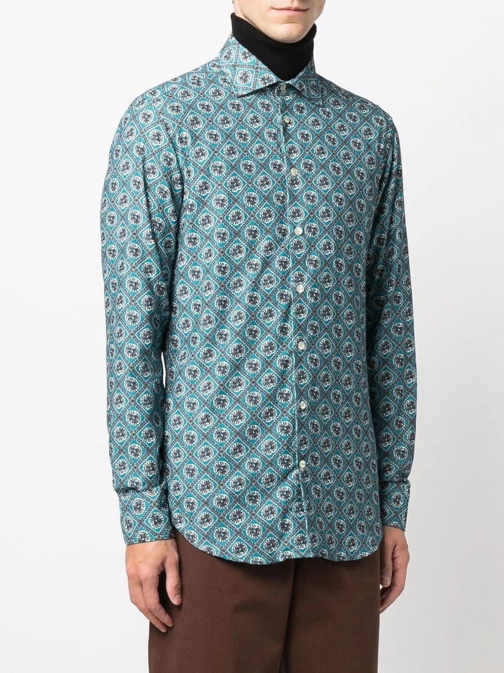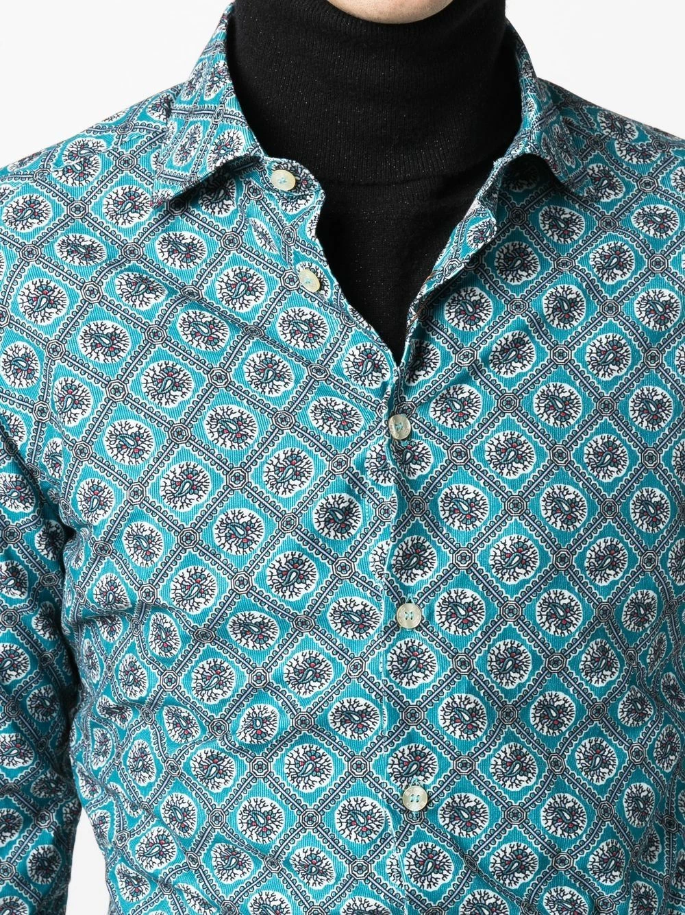Broderies, col boutonné, manches longues. Couleur : vert. Matière : coton.