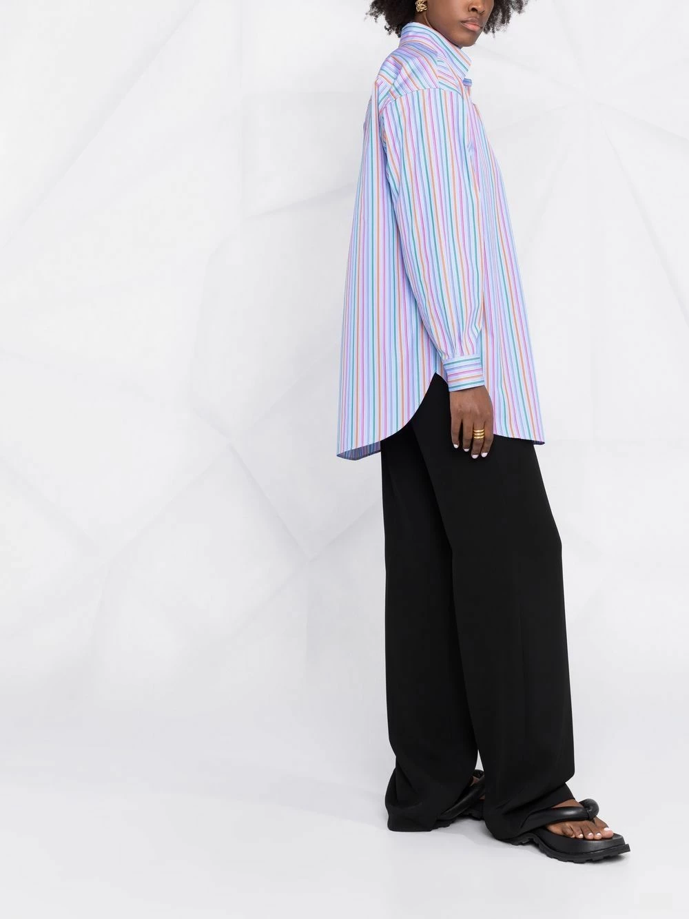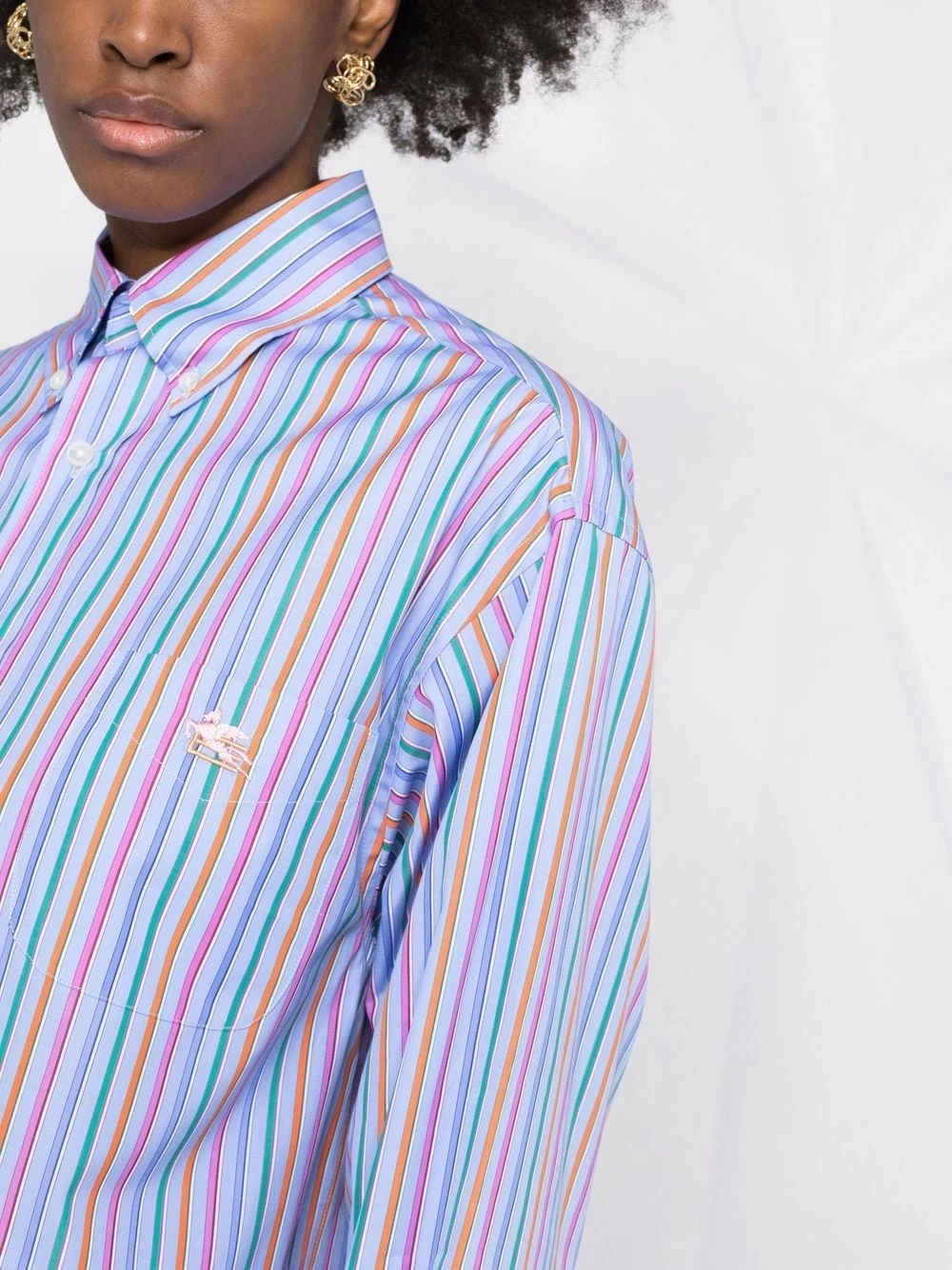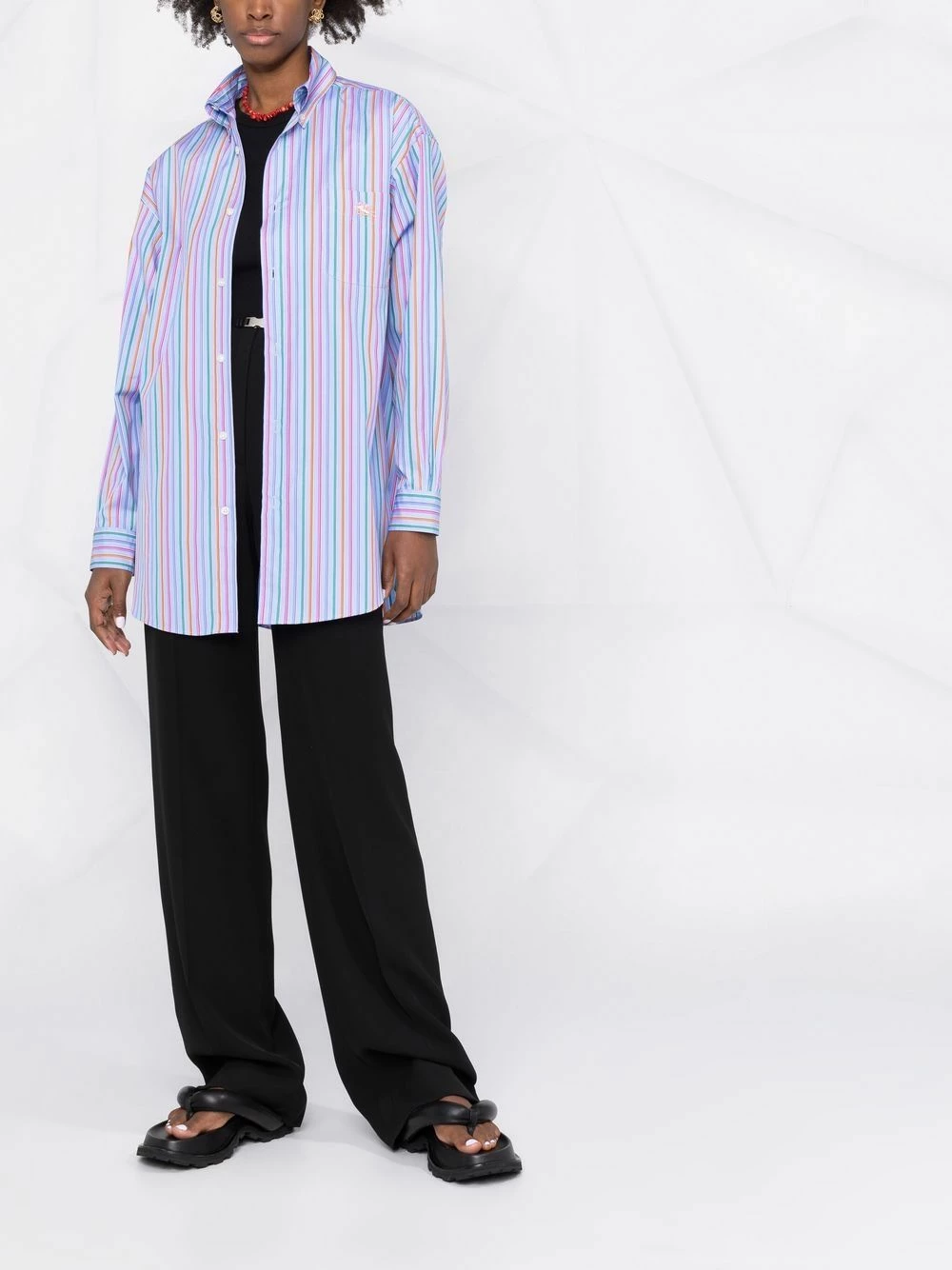 Logo brodé sur la poitrine, rayures verticales, col boutonné, boutonnière sur le devant, manches longues. Couleur : multicolore. Matière : coton.
