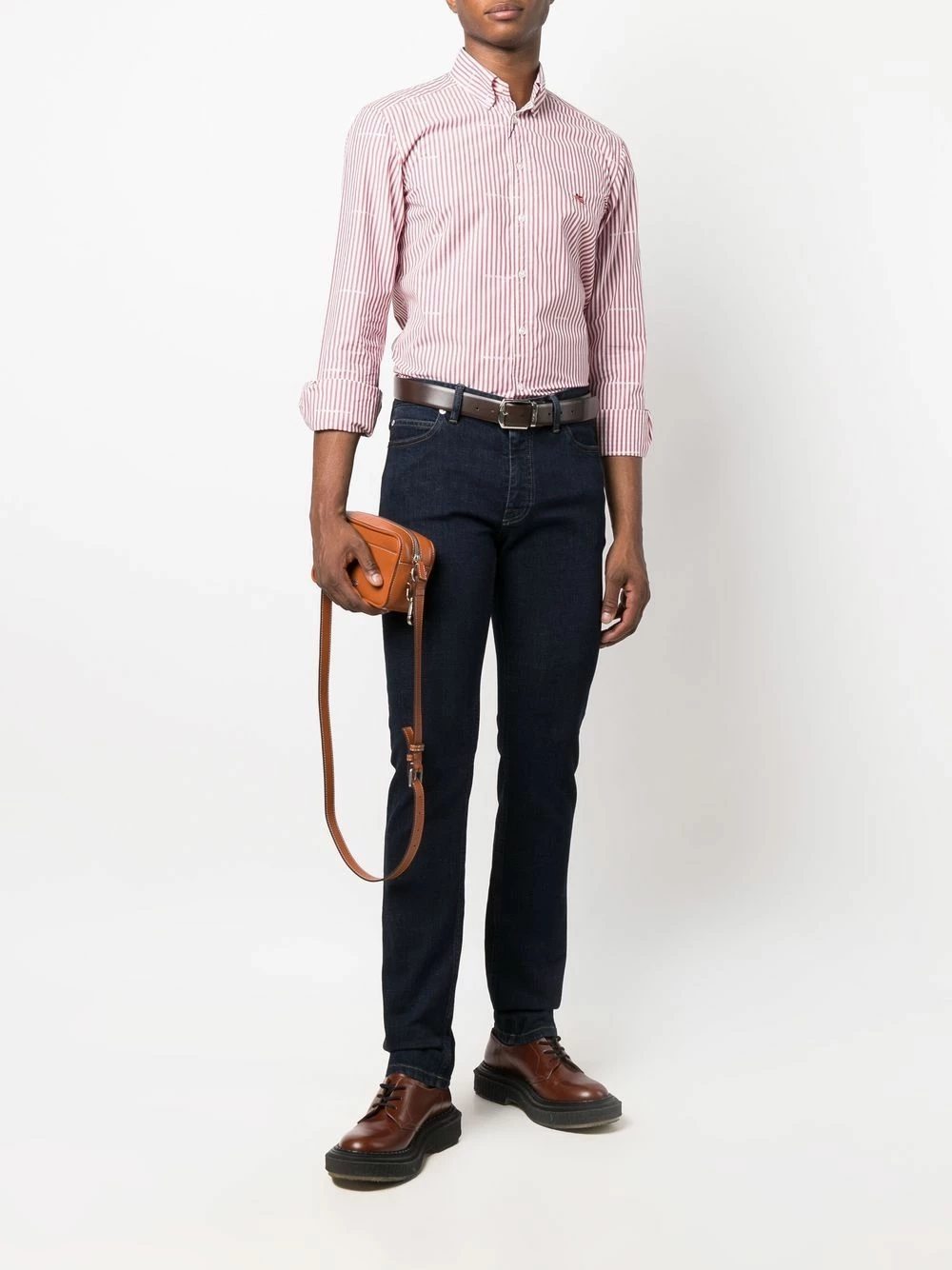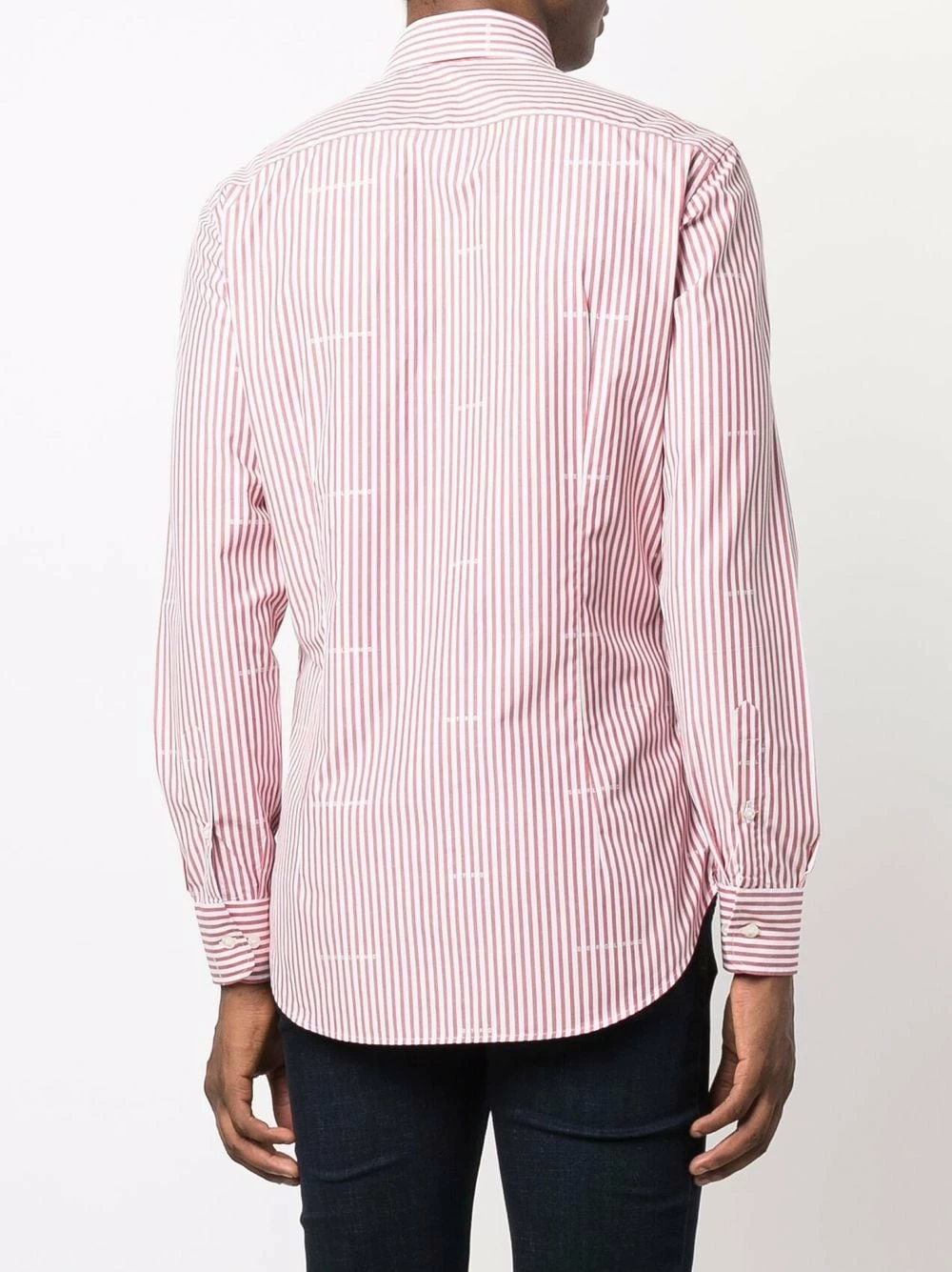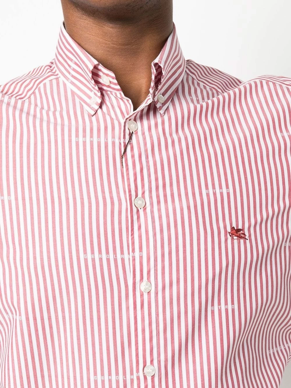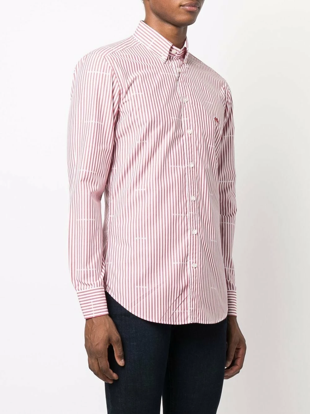 Fines rayures, logo brodé sur la poitrine, imprimé monogrammé, col boutonné, boutonnière sur le devant, manches à poignet boutonné, ourlet incurvé au dos. Matière : coton.