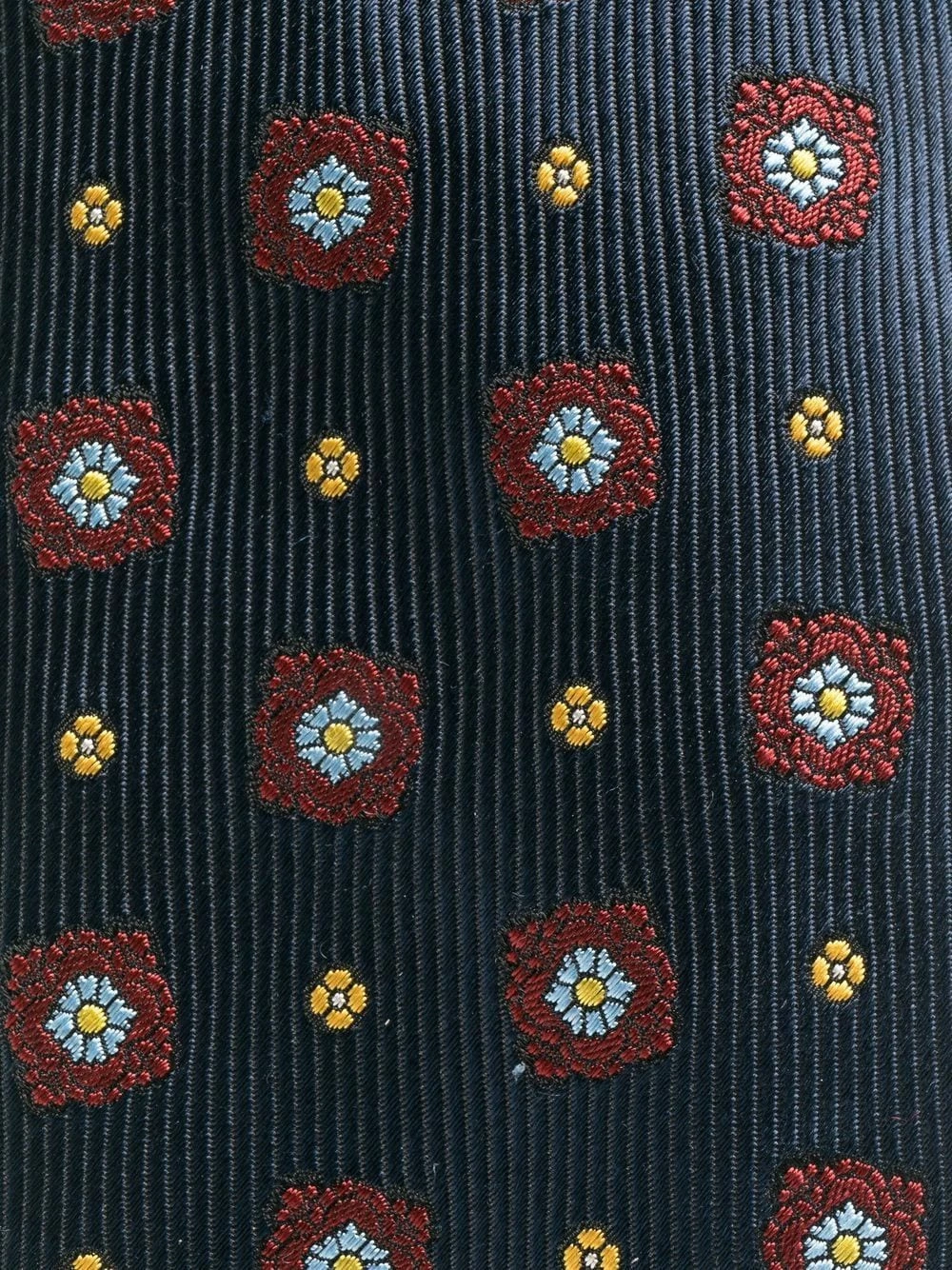 Fleurs brodées, bout pointu, bords finis, taille ajustable. Matière : soie.