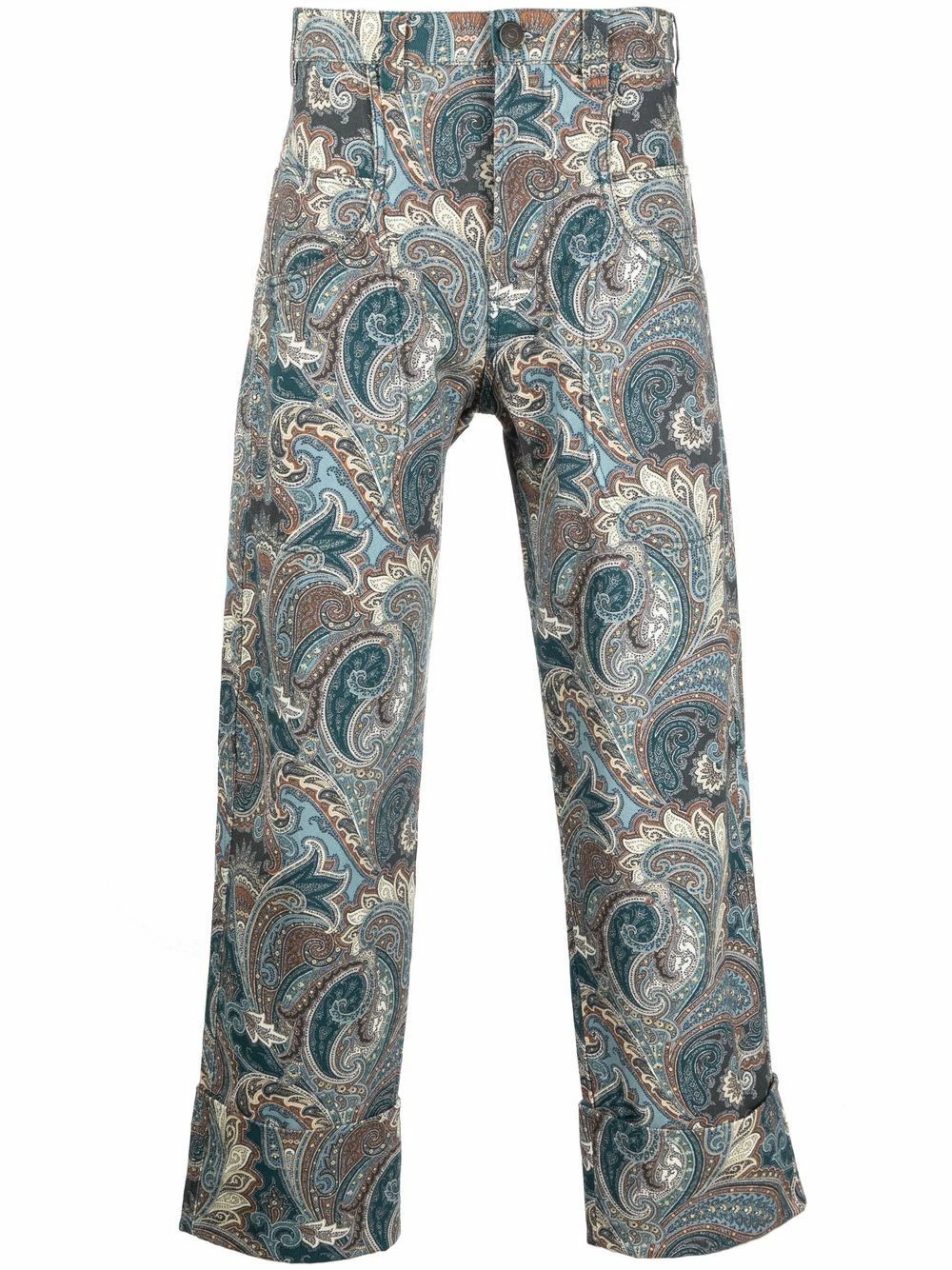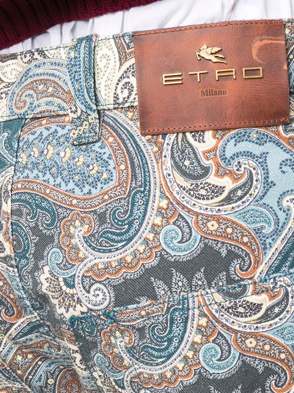 Motif cachemire, taille mi-haute, coupe droite, longueur crop, ourlet retroussé, passants de ceinture, poches plaquées latérales, fermeture à zip et boutons sur le devant, patch logo sur l’arrière. Matière : coton.