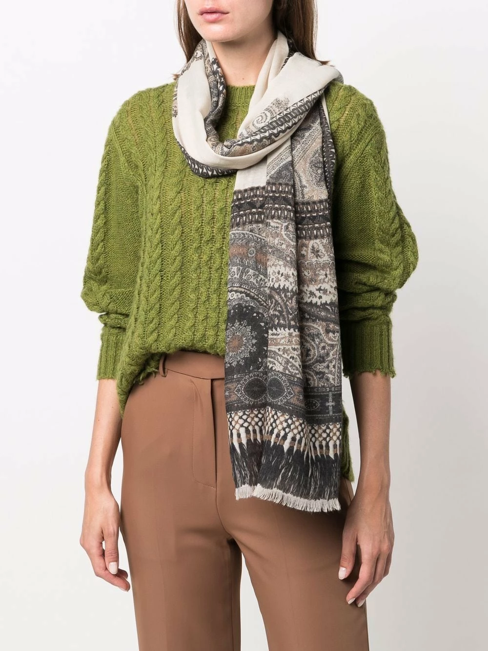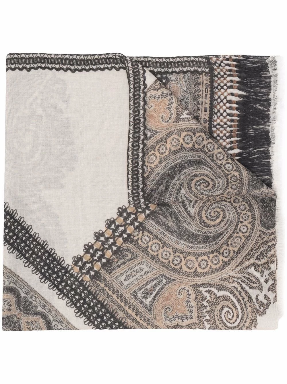 Motif cachemire, imprimé pampille, bords finis. Matière : cachemire.
