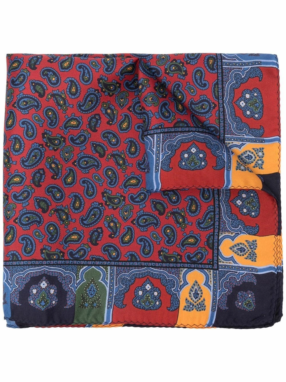 Forme carrée, motif cachemire, bords finis. Matière : soie.