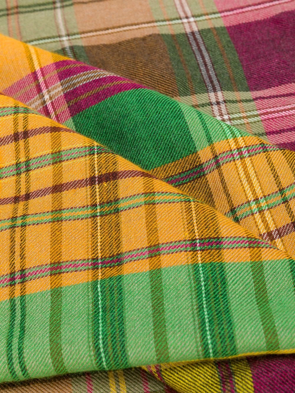 Écharpe à motif tartan en laine Etro avec empiècements contrastants, bords frangés et motif tartan. Couleur : jaune.