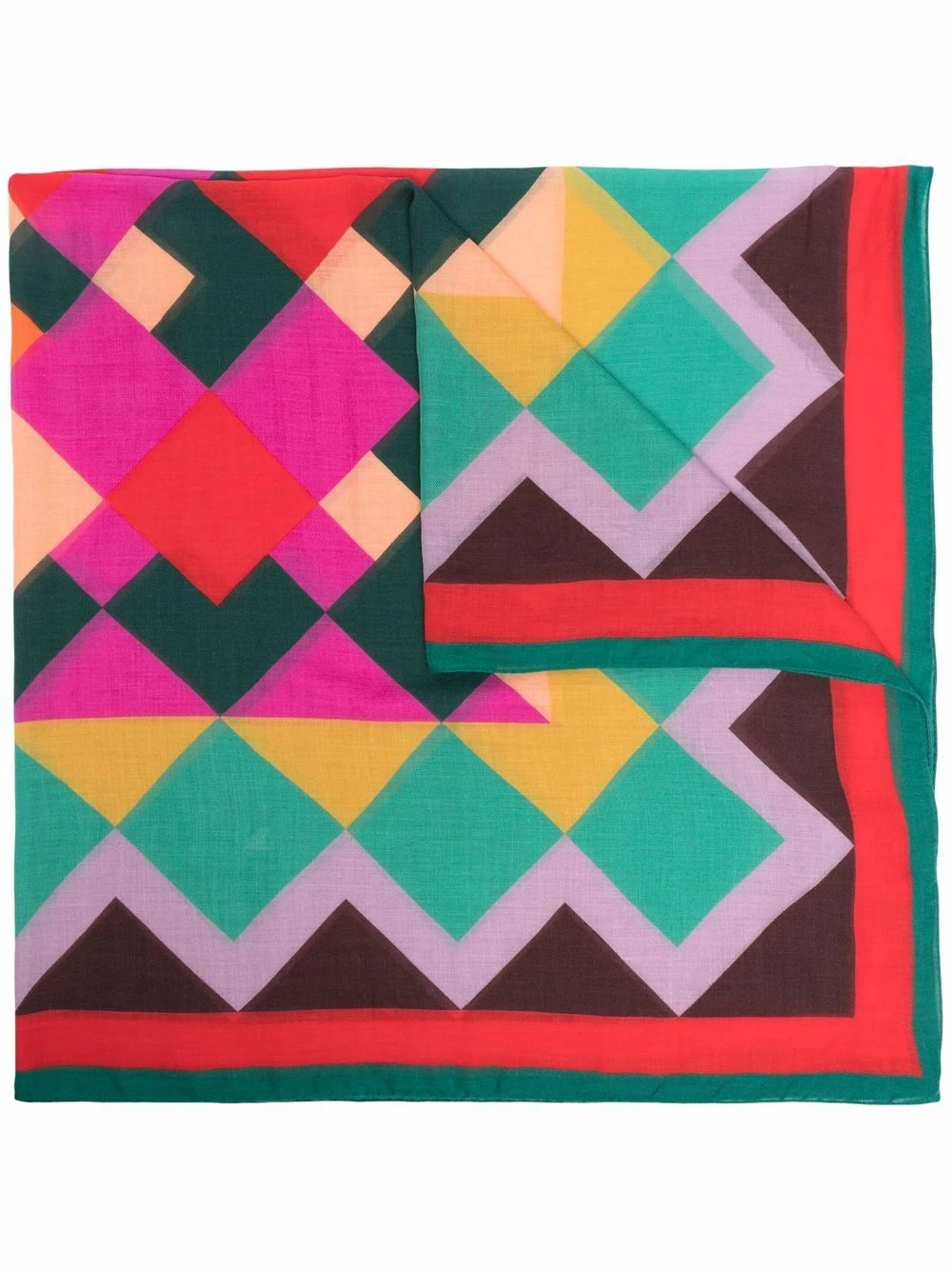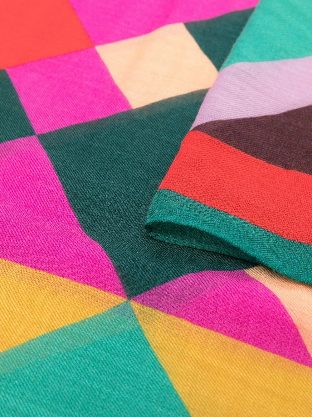 Motif géométrique, design à empiècements colour block, design tricoté. Couleur : multicolore. Matière : cachemire.