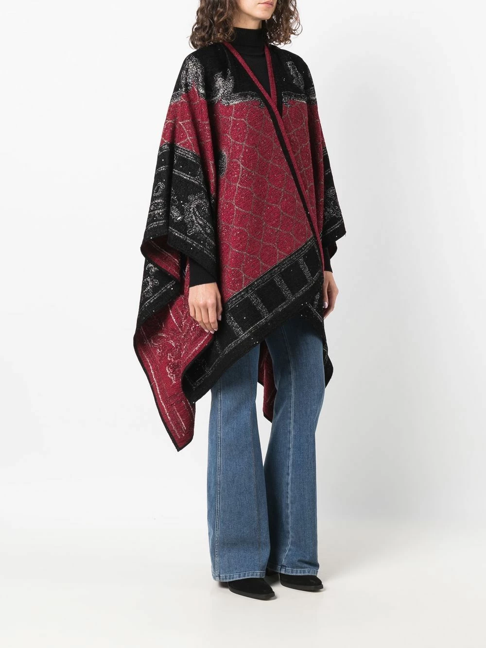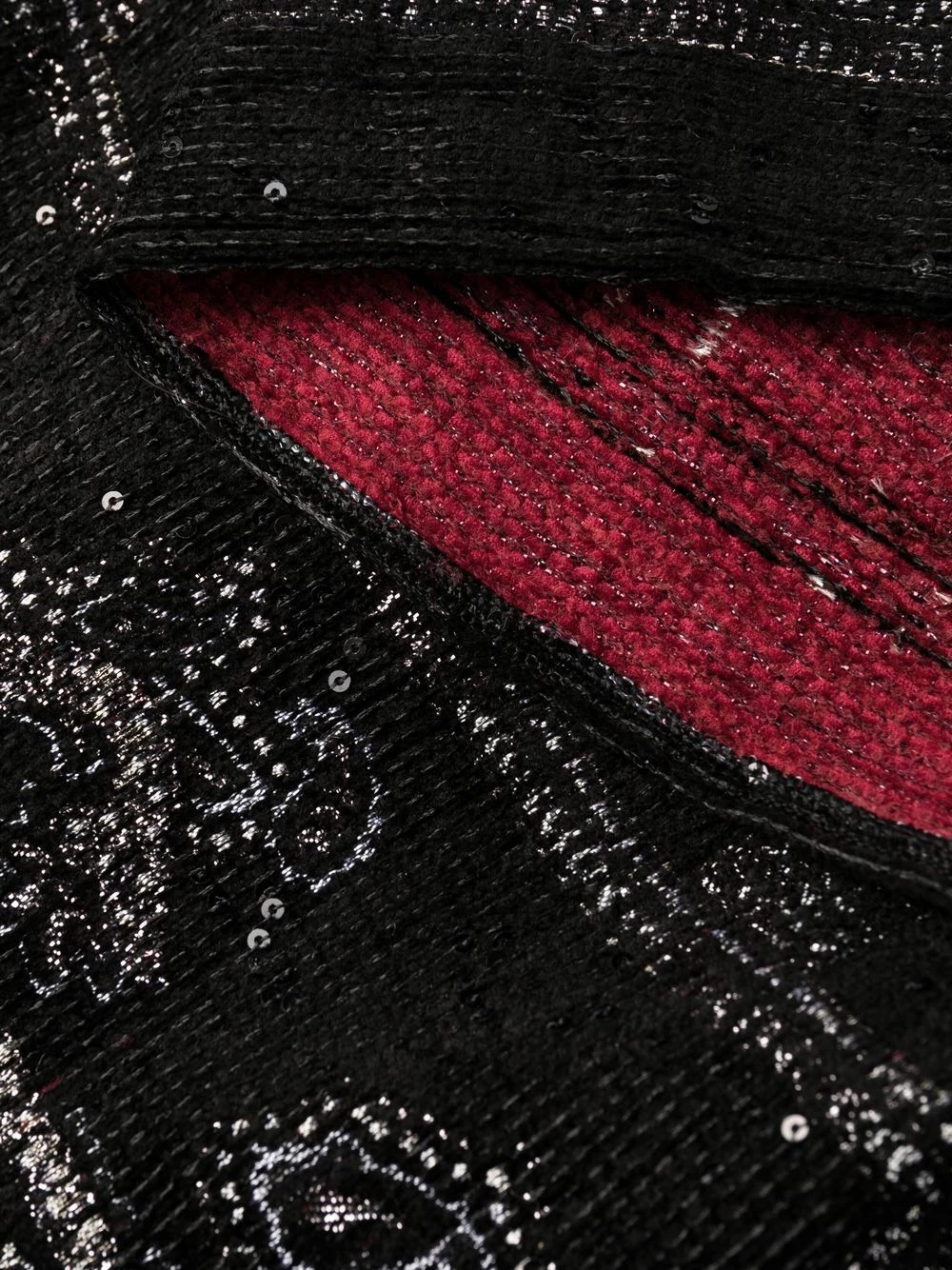 Tissage métallisé, manches longues amples, ourlet plus long au dos.