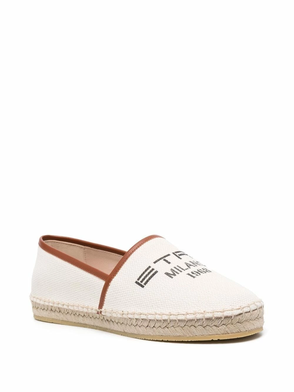 Logo imprimé sur le devant, bout rond, design à enfiler, semelle intérieure à logo, semelle en raphia tressé, semelle plate en caoutchouc. Matière : coton.