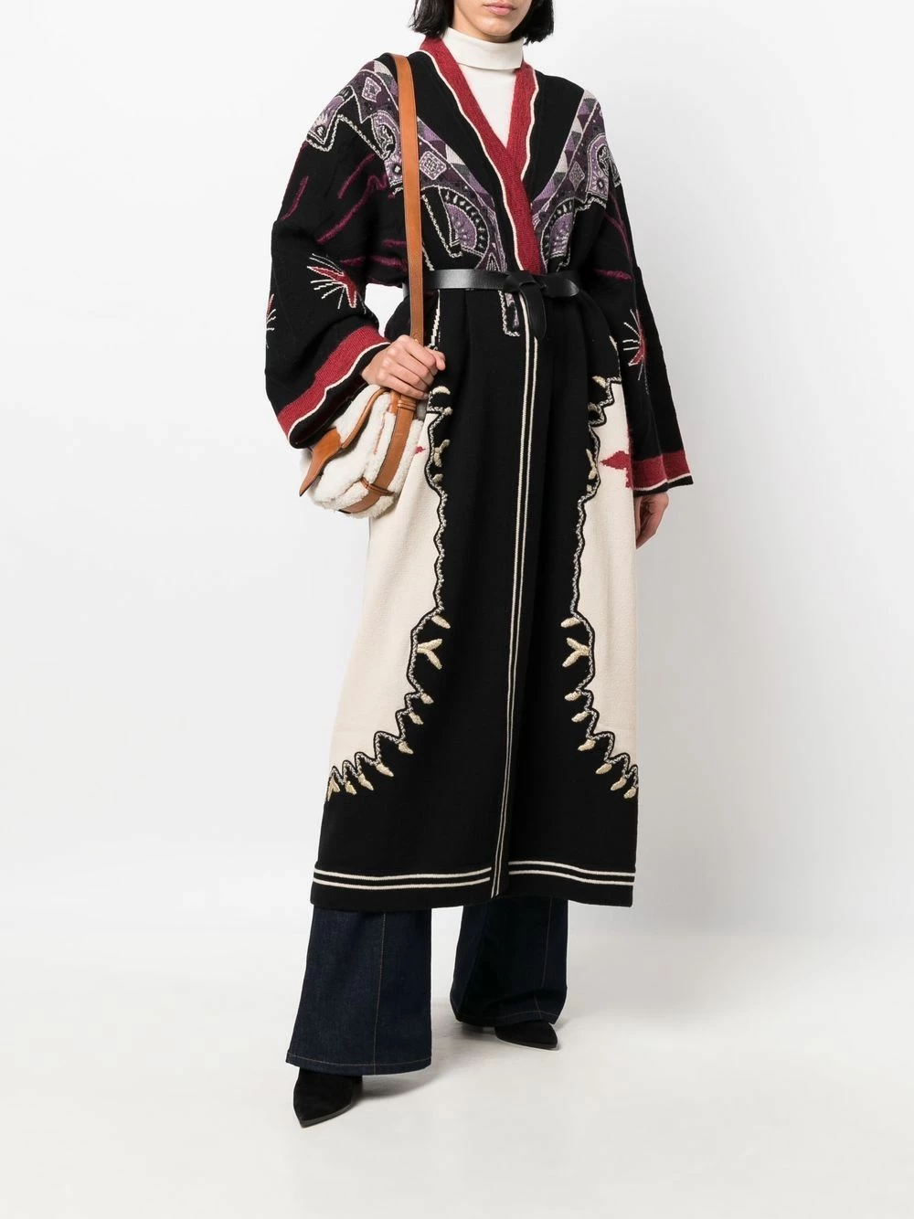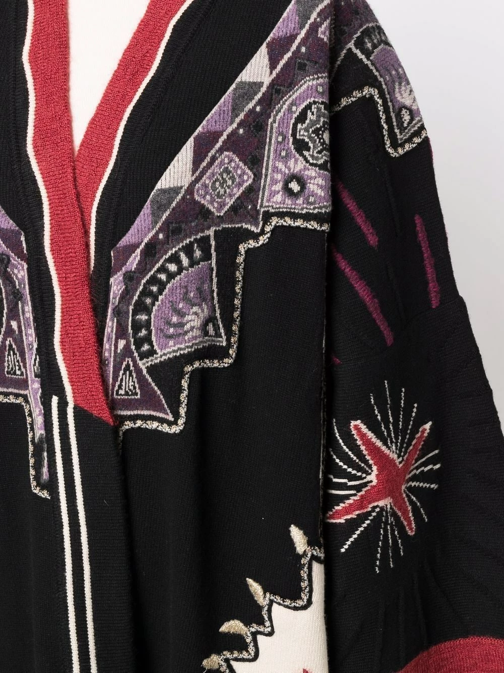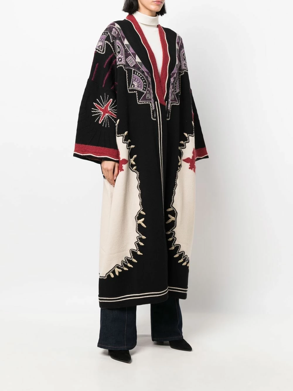 Broderies, bords contrastants, col v, manches longues amples, design portefeuille.